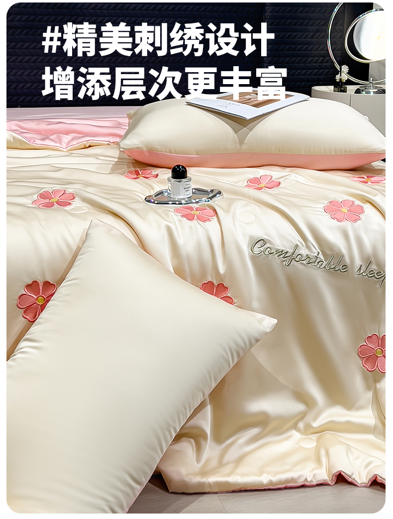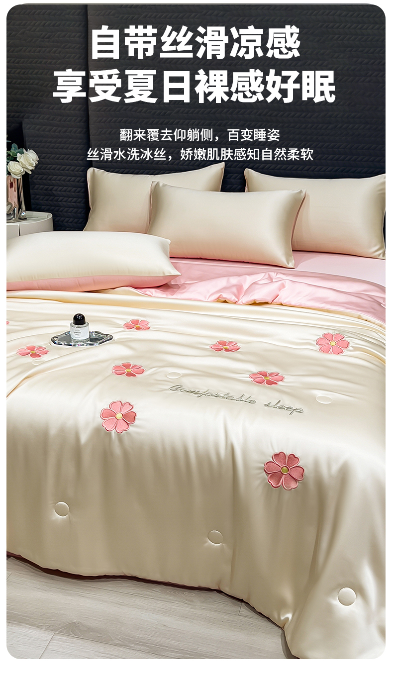 • 91家纺网 家纺一手货源 找家纺 爱彼家纺 2026夏季新款水洗冰丝轻奢刺绣凉感夏被夏凉被空调被 花瓣-奶白粉