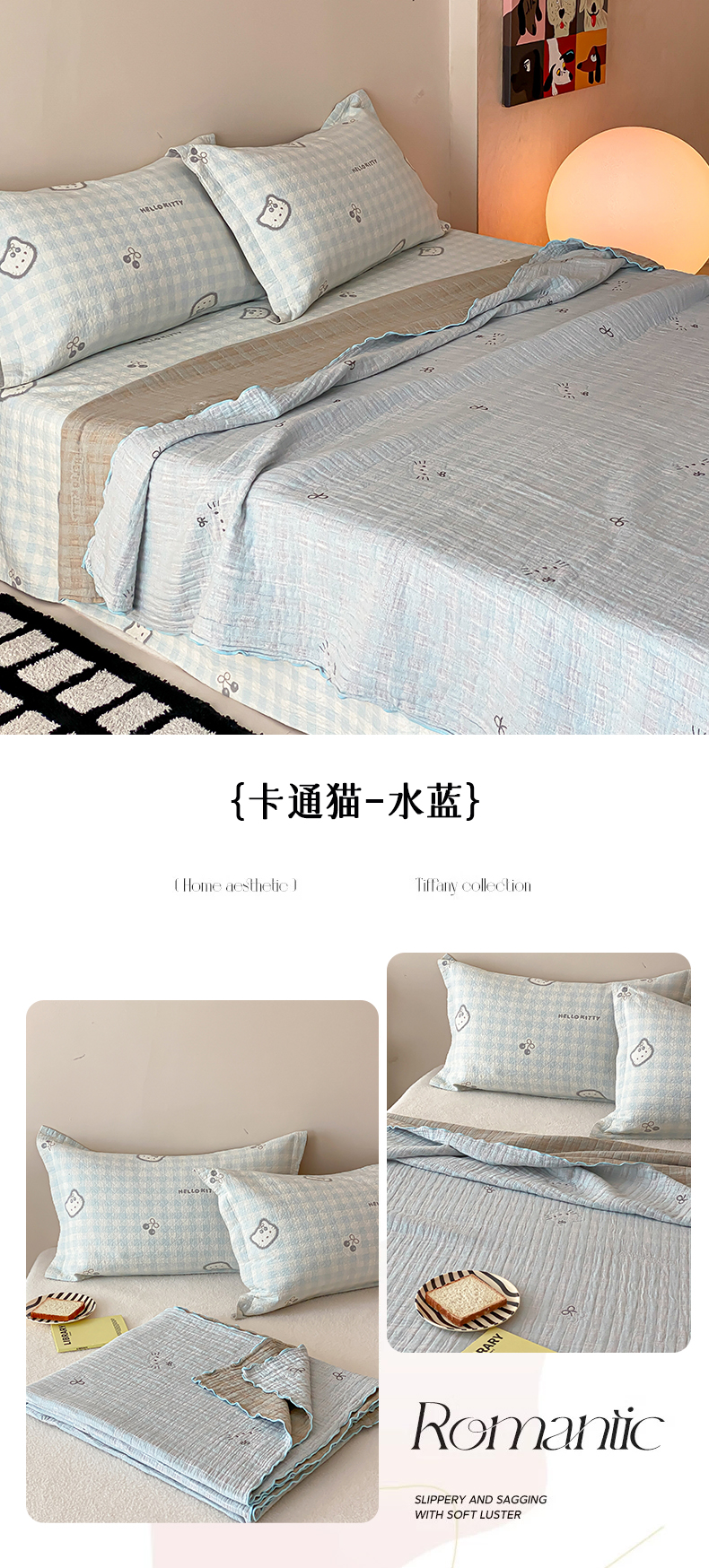 (总)麻依 2025新款安心棉床盖三件全棉四层纱布床单,粉色KT猫,花园小兔,凯蒂的快乐,可爱鸭鸭,可可猫咪-奶茶,可可猫咪-深咖,蓝色熊猫,团团KT,小熊格格,心心领结,欣欣樱桃,雪漫,樱桃兔猫,组合
