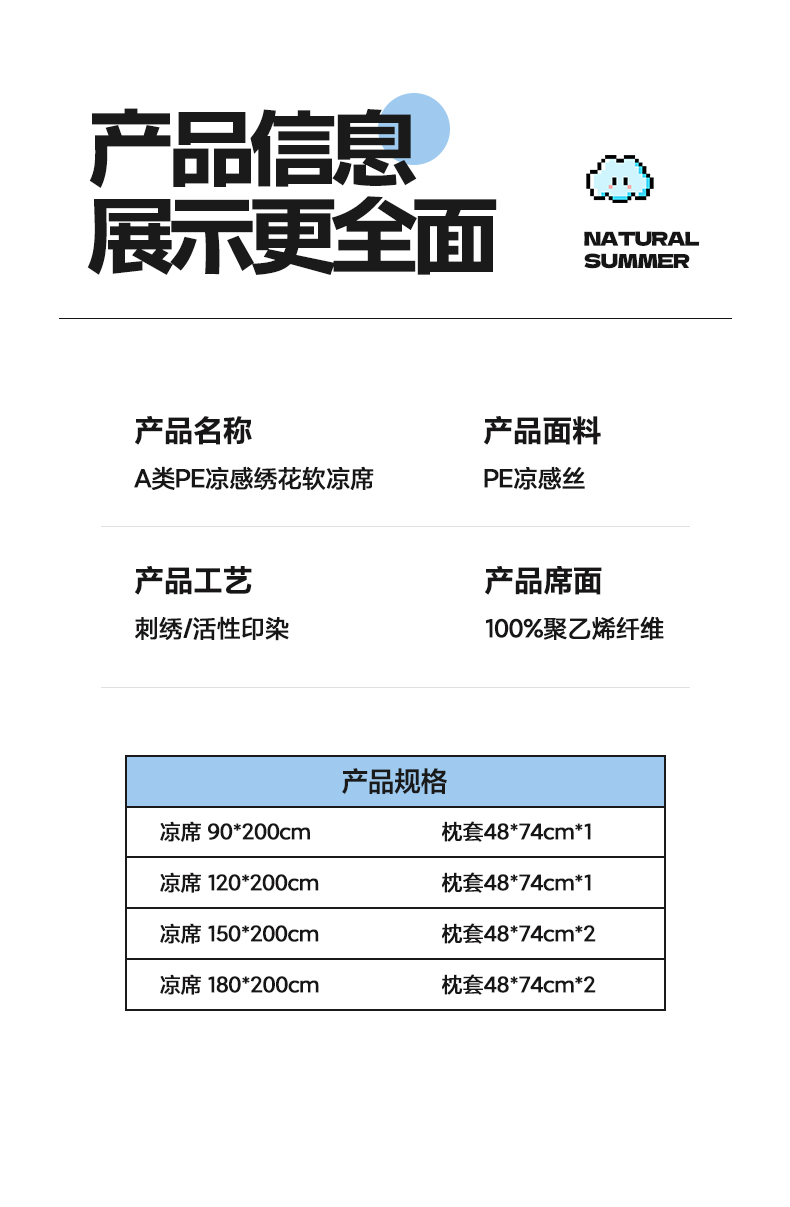 180x200cm凉席+枕套一对