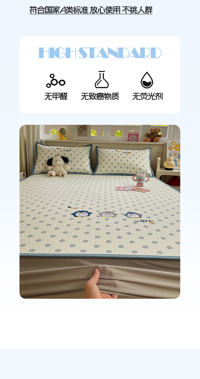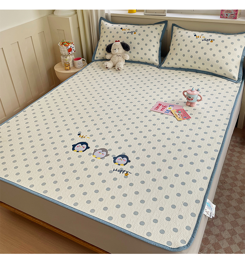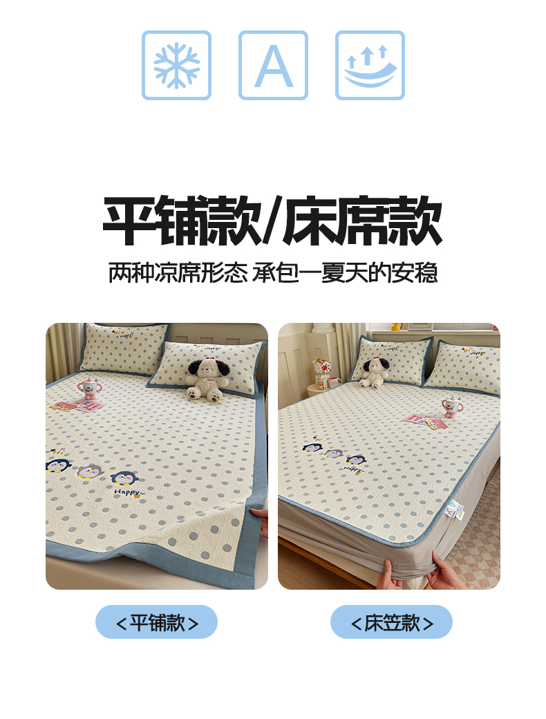 帅露家纺 2026新款A类PE中分子卡通大版绣花软凉席席子 床笠款-蓝调企鹅