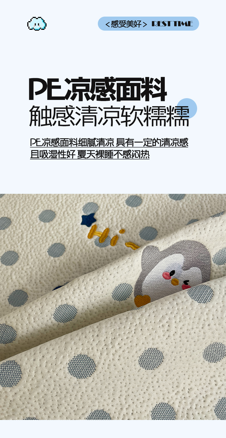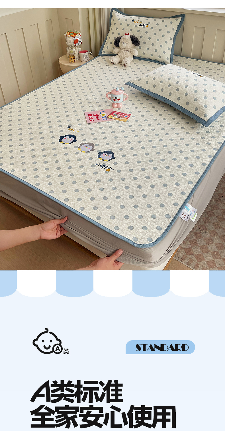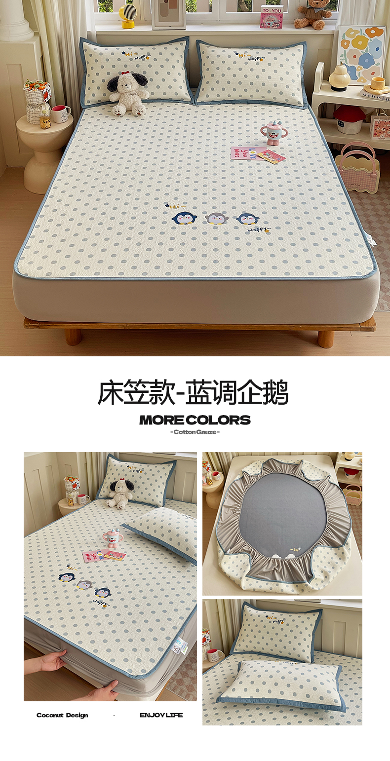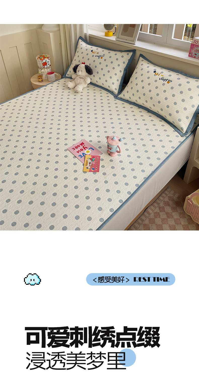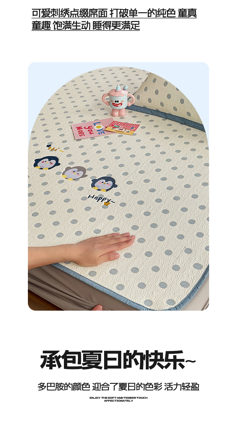 (总)帅露家纺 2026新款A类PE中分子卡通大版绣花软凉席席子,床笠款-波点日记,床笠款-粉屿森林,床笠款-蓝调企鹅,床笠款-懒懒兔,床笠款-星月织梦,平铺款-波点日记,平铺款-粉屿森林,平铺款-蓝调企鹅,平铺款-懒懒兔,平铺款-星月织梦