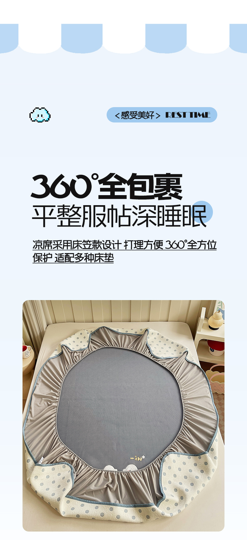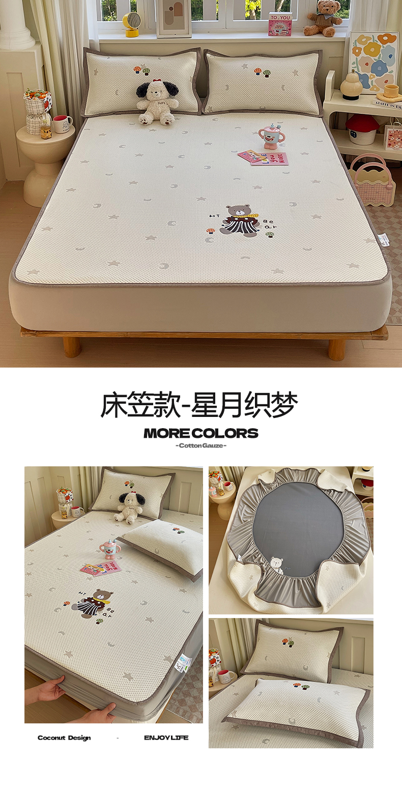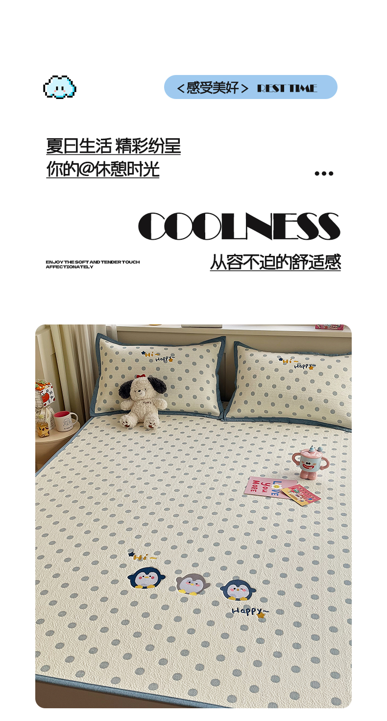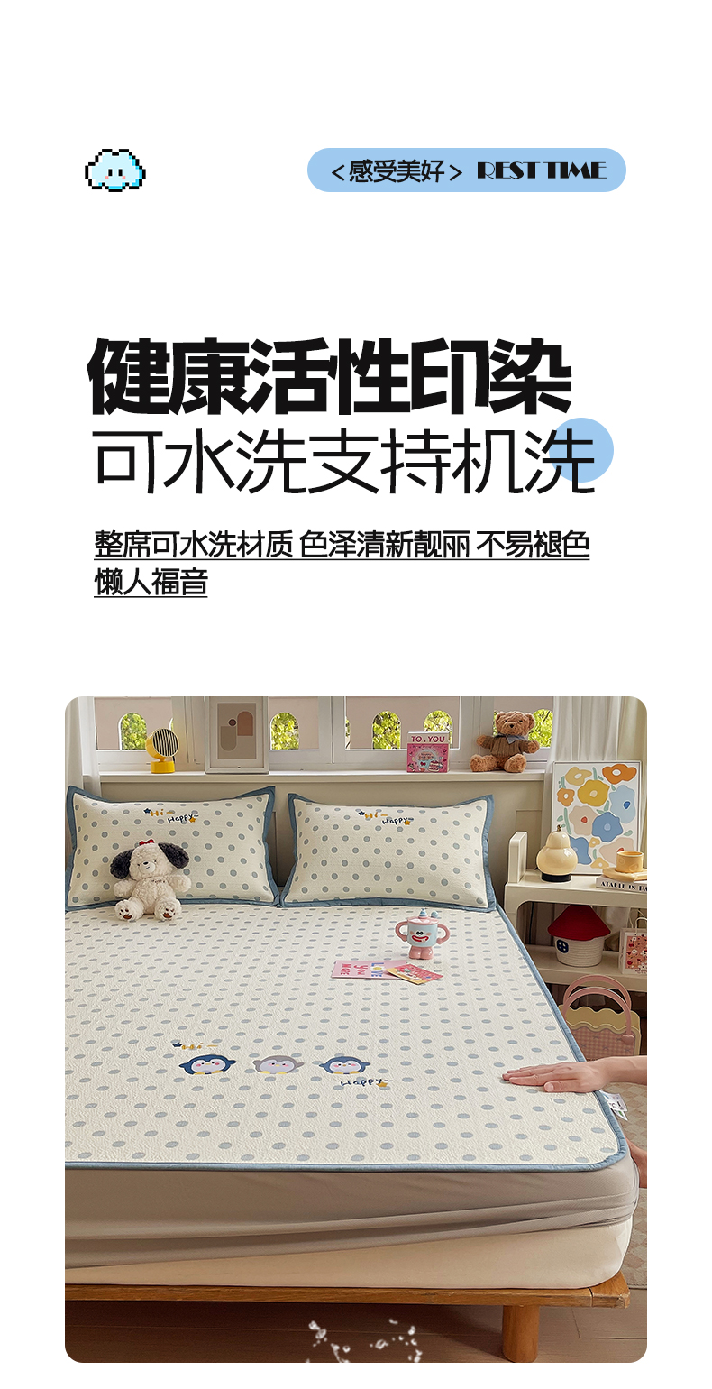 (总)帅露家纺 2026新款A类PE中分子卡通大版绣花软凉席席子,床笠款-波点日记,床笠款-粉屿森林,床笠款-蓝调企鹅,床笠款-懒懒兔,床笠款-星月织梦,平铺款-波点日记,平铺款-粉屿森林,平铺款-蓝调企鹅,平铺款-懒懒兔,平铺款-星月织梦
