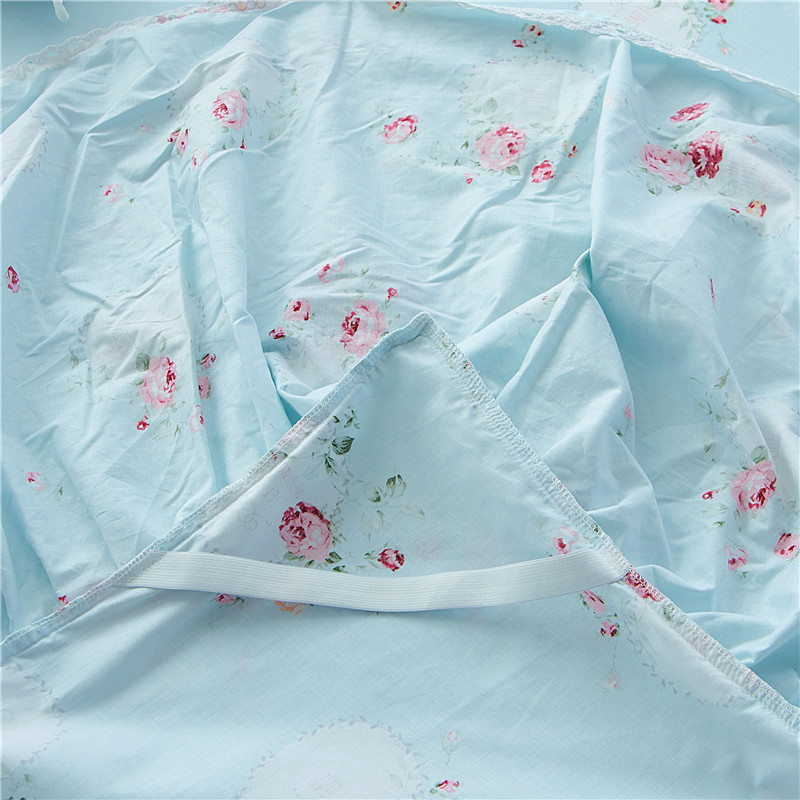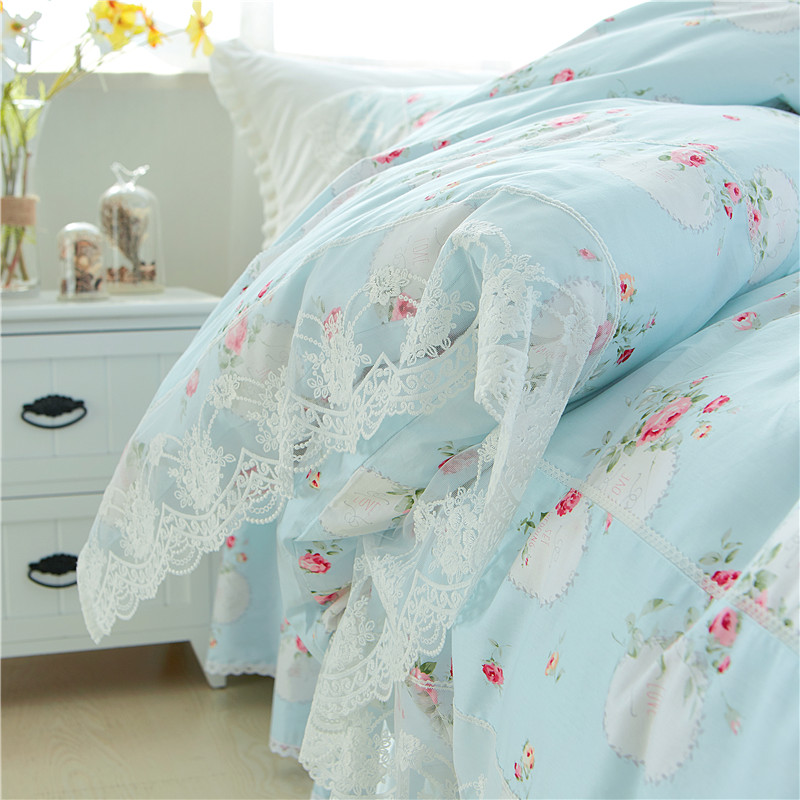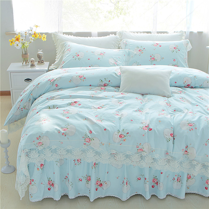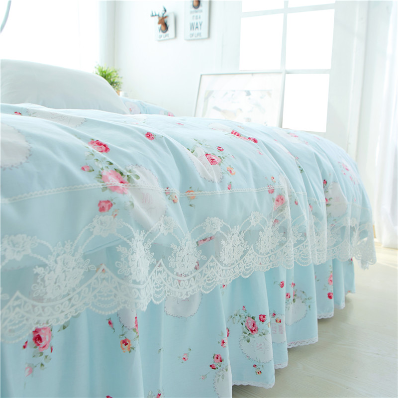 优质全棉13372韩版蕾丝床裙款四件套 梦幻蓝