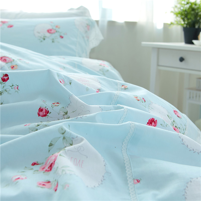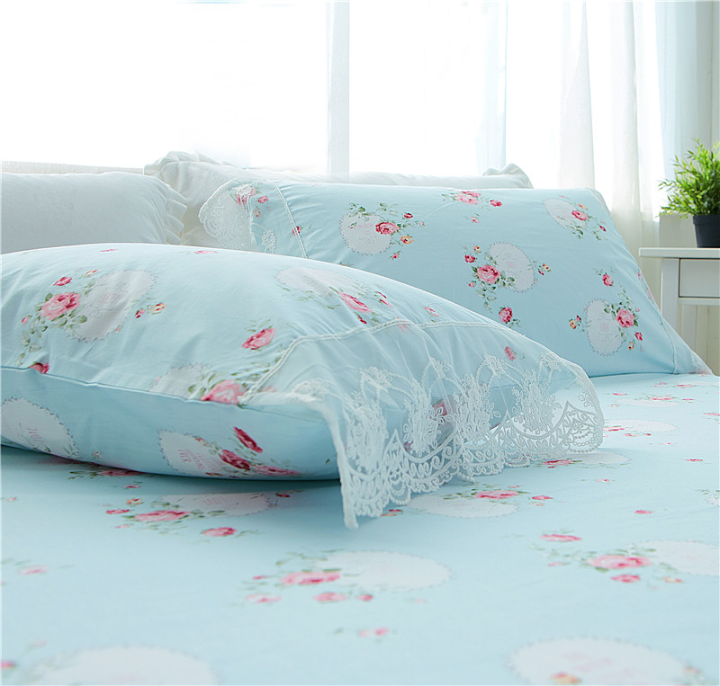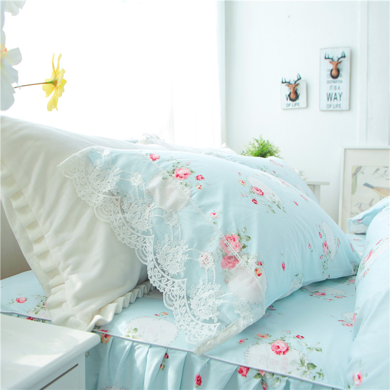商品名称:优质全棉13372韩版蕾丝床裙款四件套 梦幻蓝