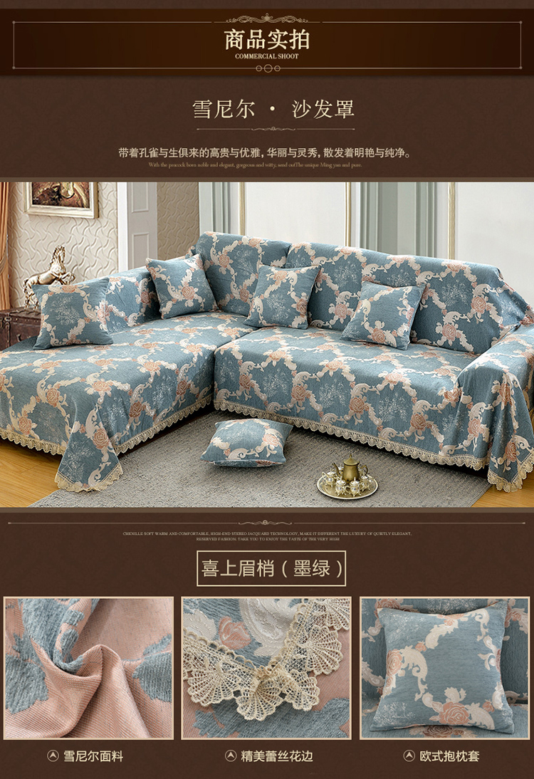 启博家纺 2022欧式简约全盖雪尼尔沙发巾沙发垫沙发套沙发罩 一世情缘,一世情缘,45*45cm抱枕套