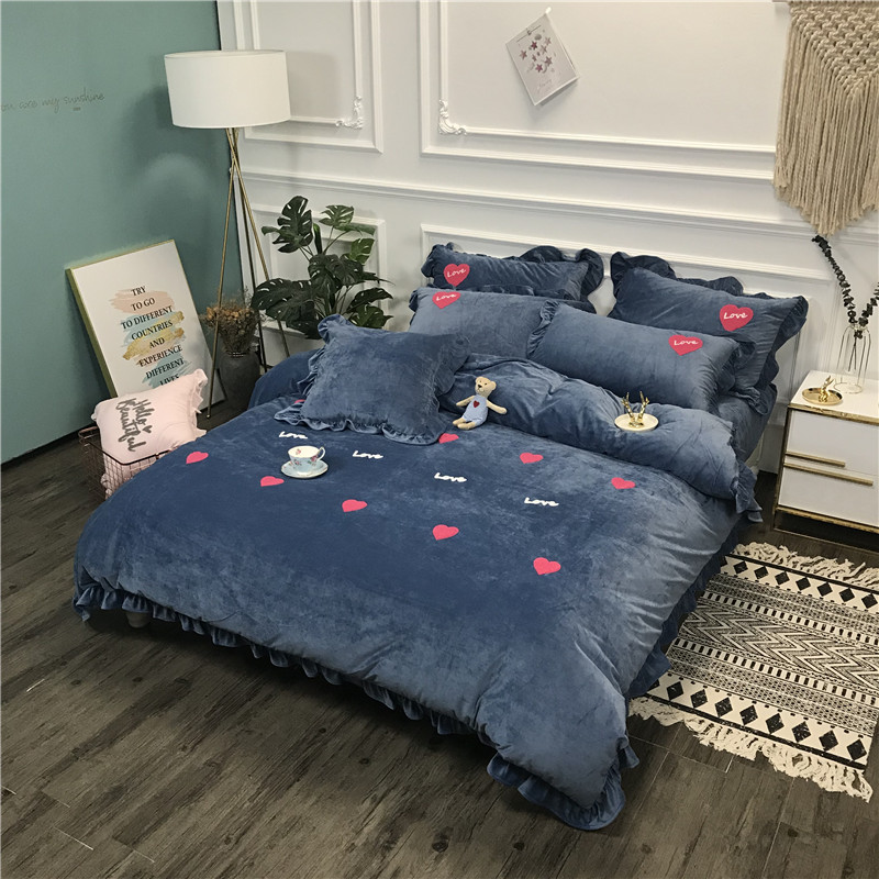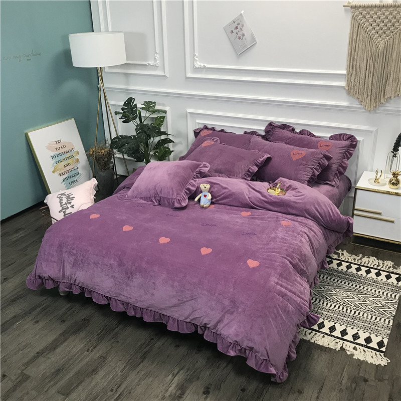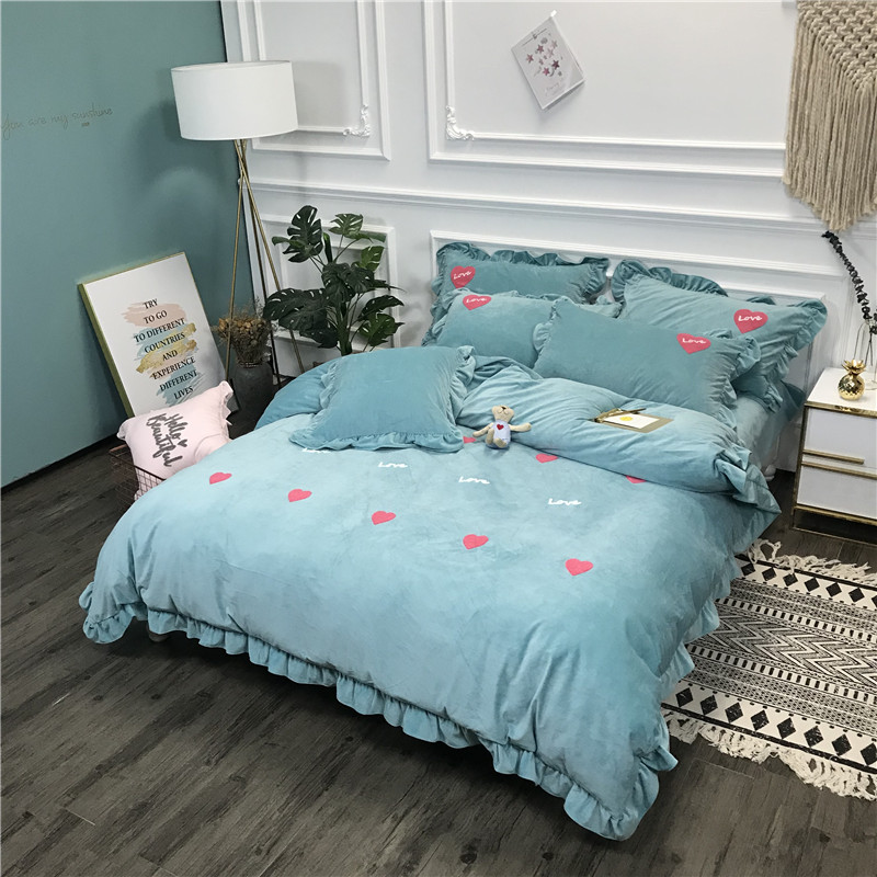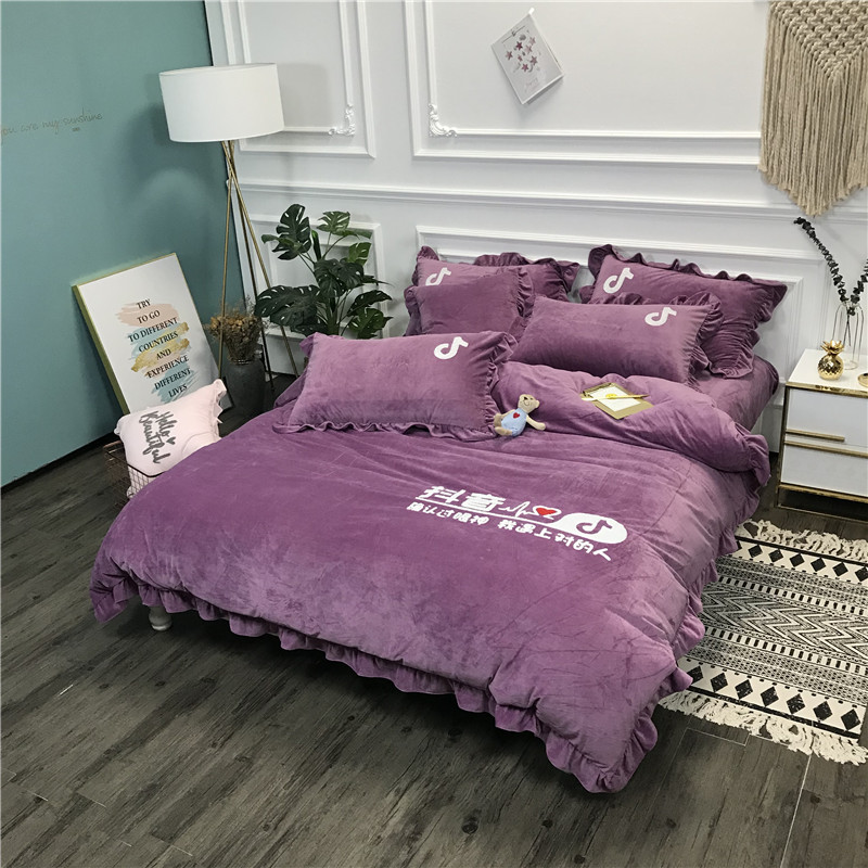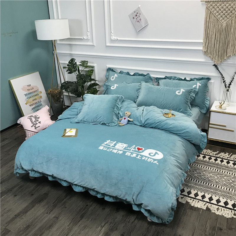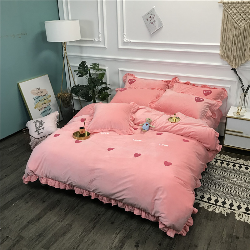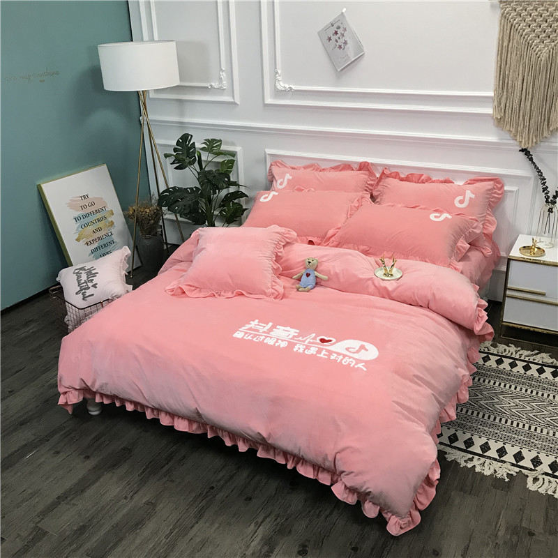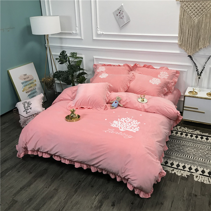 (总)玛奇朵 2025新款韩系少女全棉立体提花四件套-,青纱粉黛