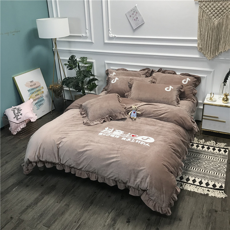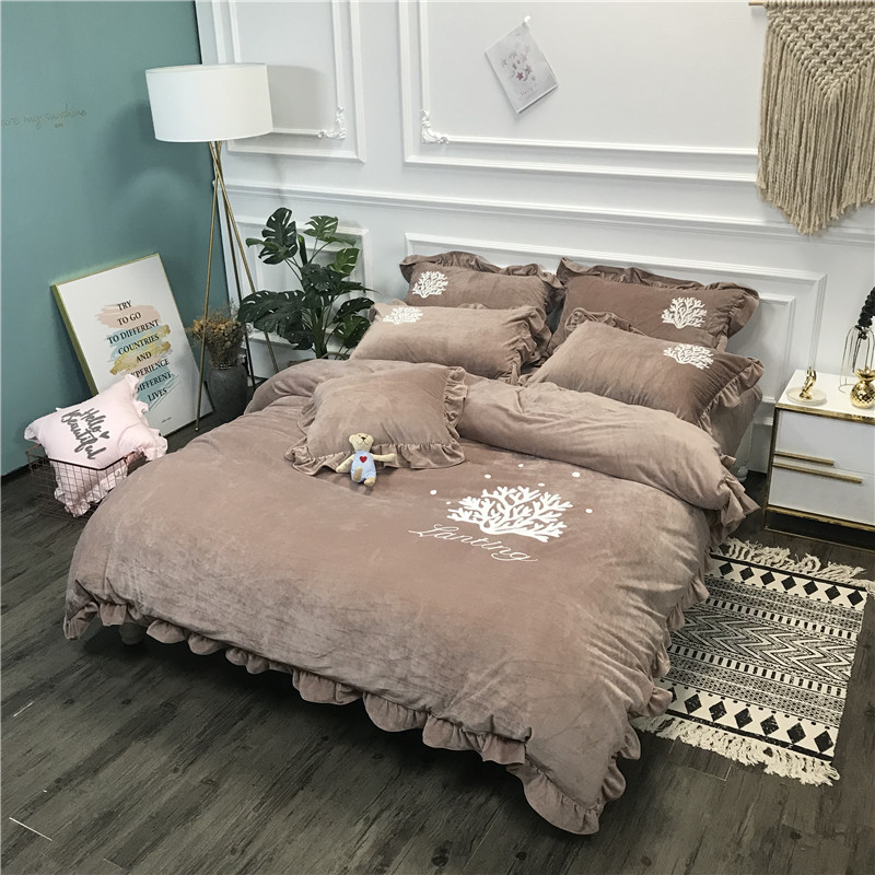 (总)玛奇朵 2025新款秋冬新品230克工艺立体雕花牛奶绒四件套 花满溪系列,花满溪-粉,花满溪-灰,花满溪-卡其
