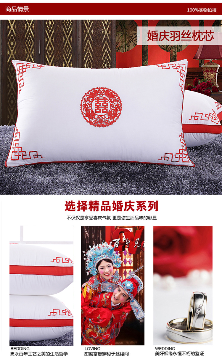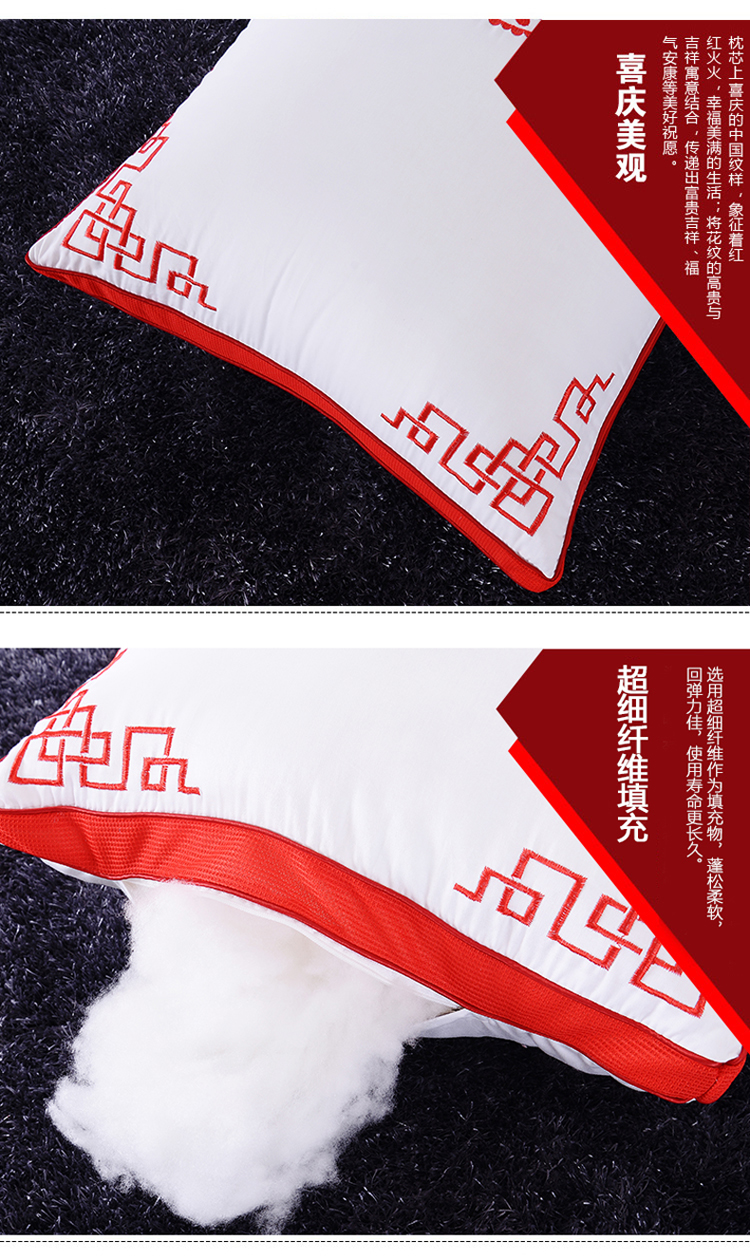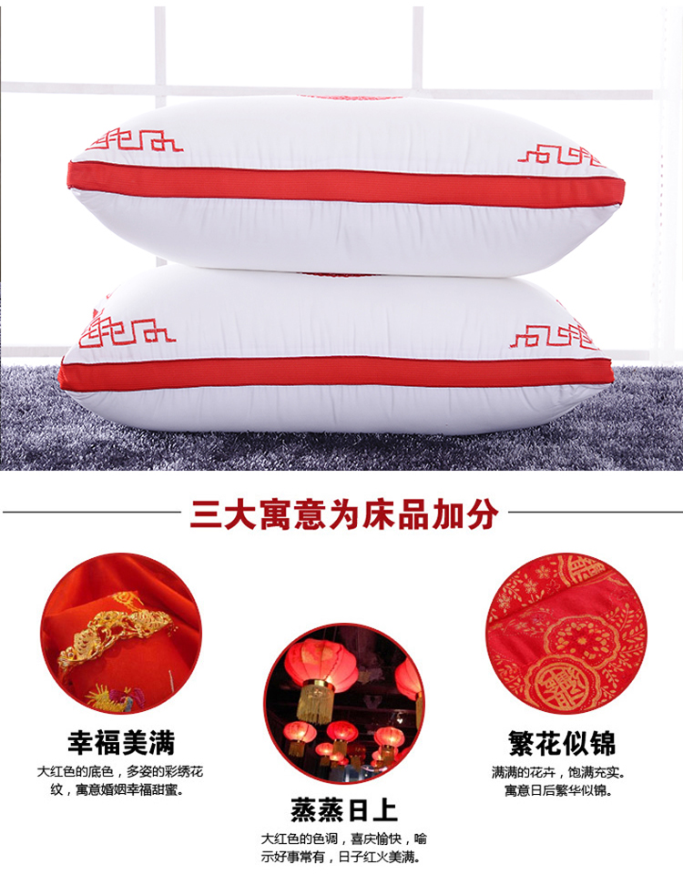 当前位置: 91家纺网 > 商品网购 > 枕头/枕芯/保健枕/颈椎枕 > 普通枕芯 > 皇冠之家 2023新款婚庆羽丝枕芯48*74一只 红丝带