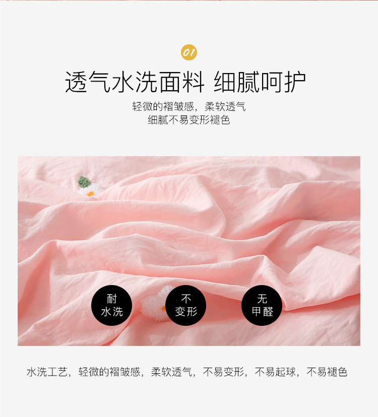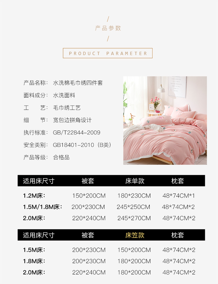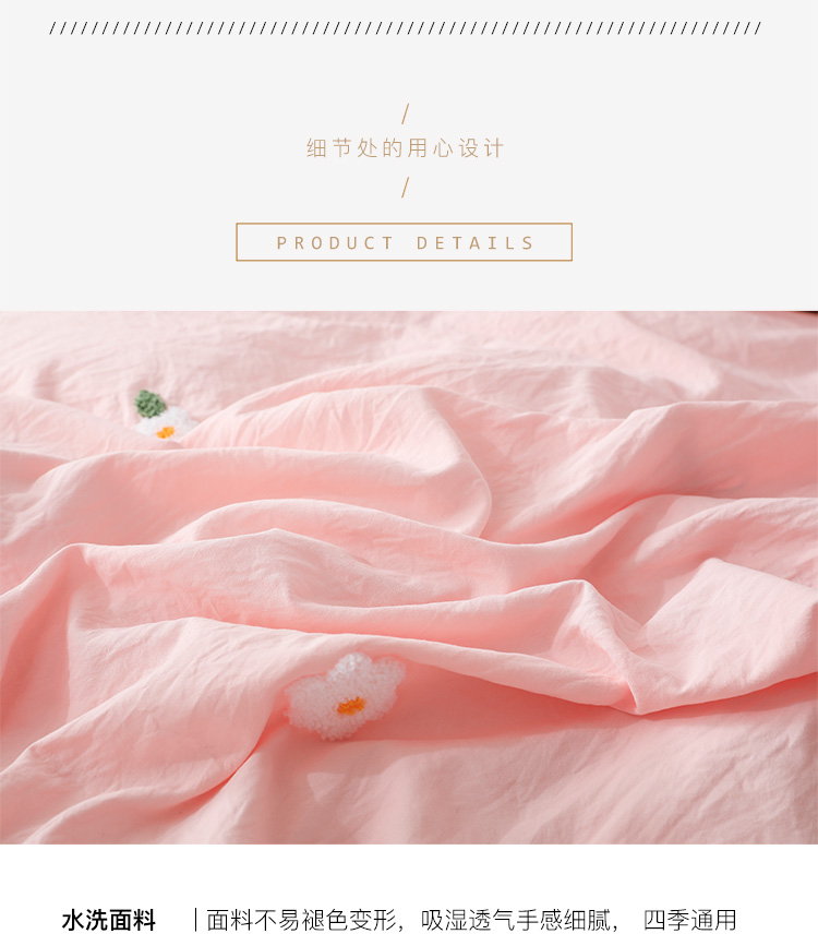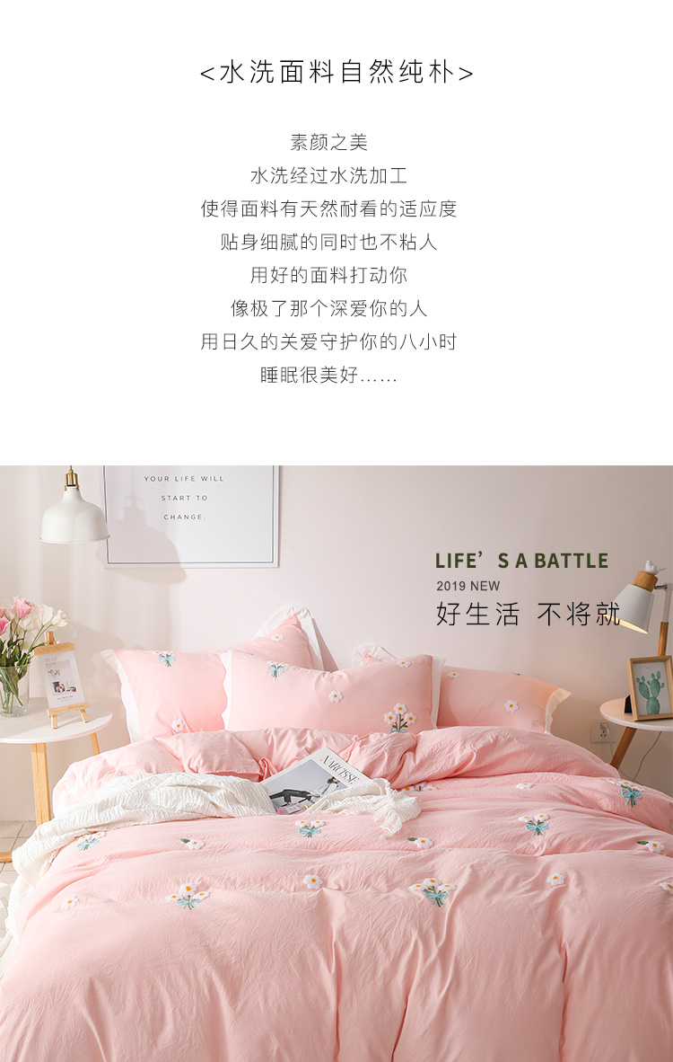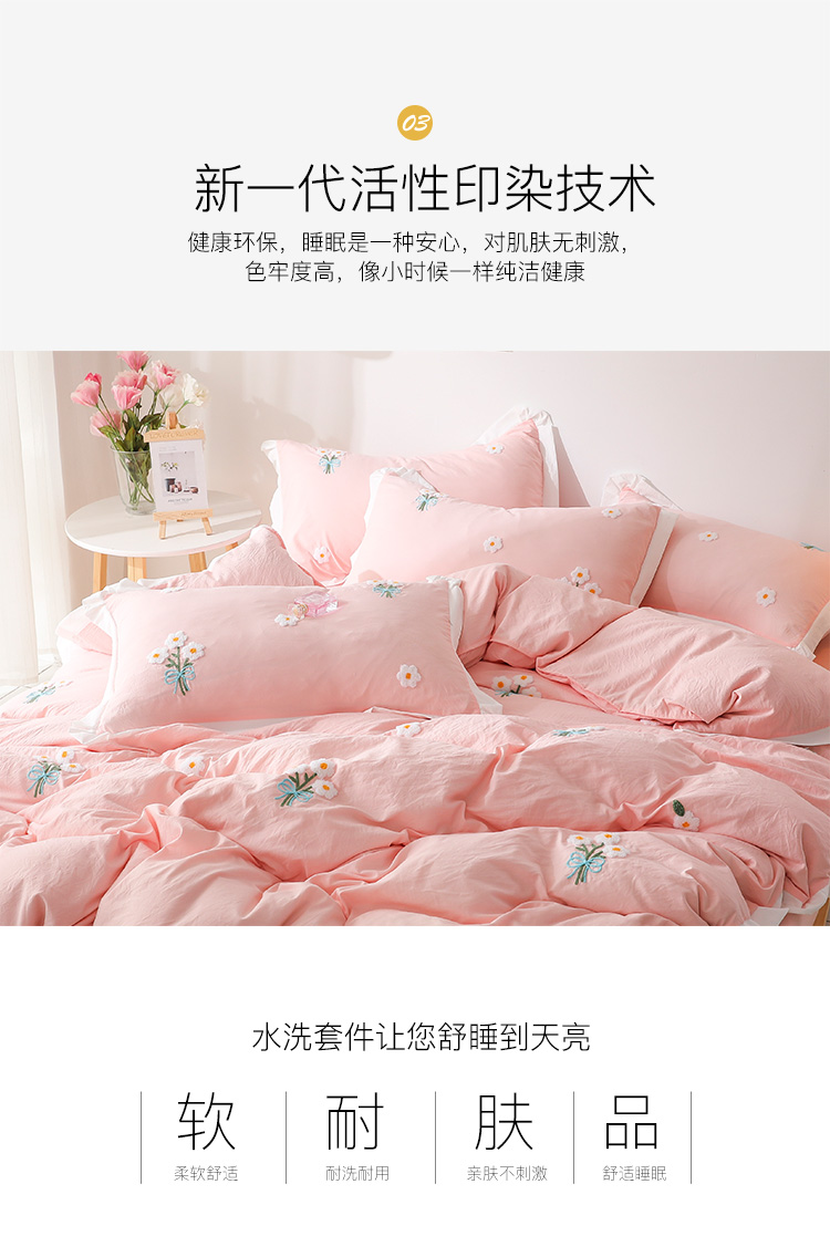 商品名称:雨菲家纺 网红爆款水洗棉小雏菊毛巾绣拼角宽边花边四件套