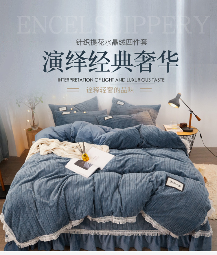 商品名称:菊上家纺 2019新款柔软针织法莱绒水晶绒牛奶绒系列四件套