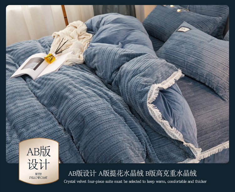 菊上家纺 2019新款柔软针织法莱绒水晶绒牛奶绒系列四件套