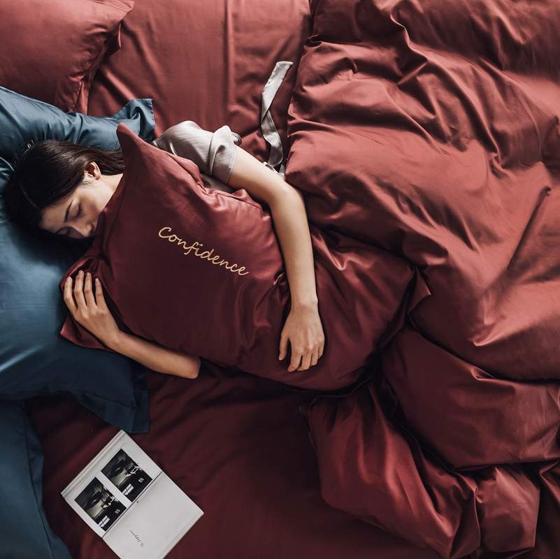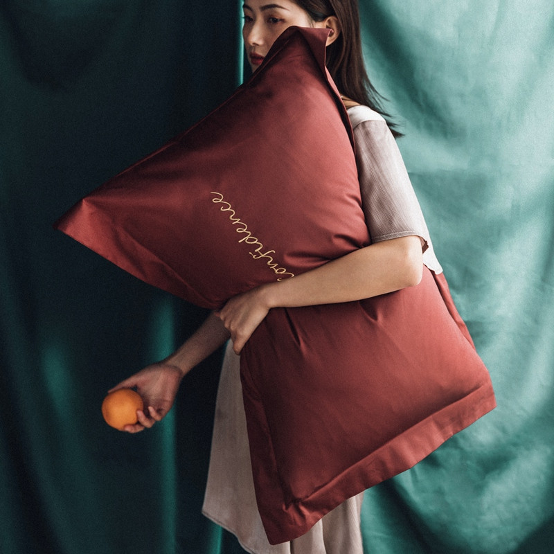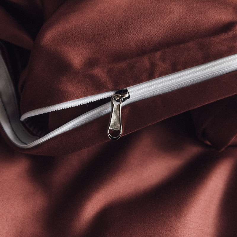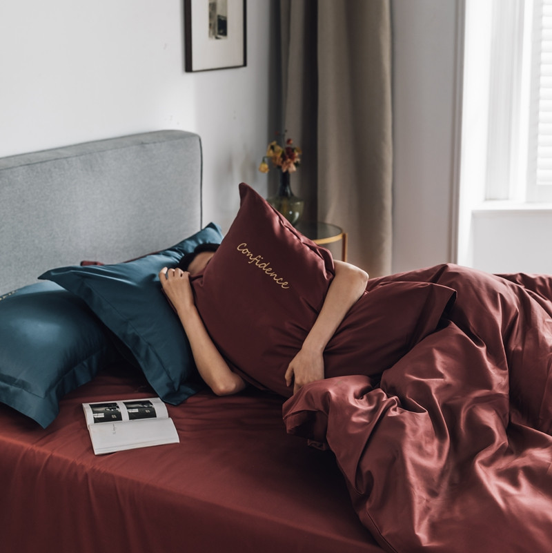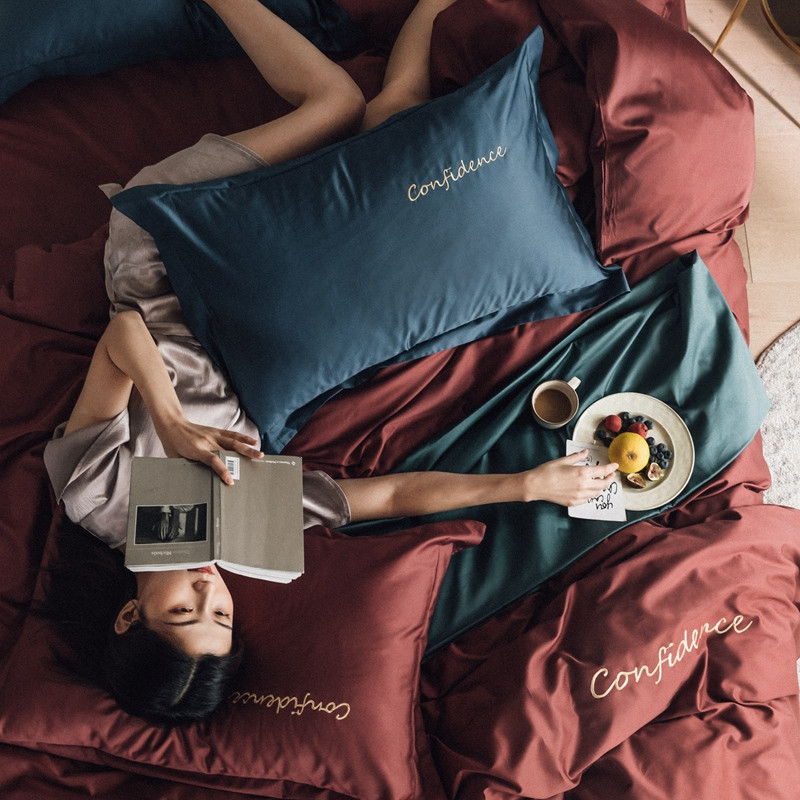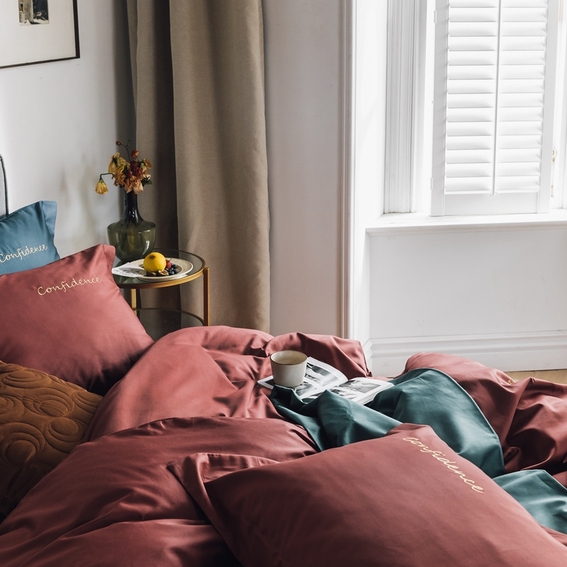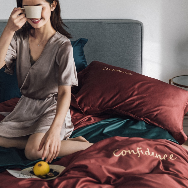 柚子家纺 100支贡缎澳棉绣花四件套图二 拾色铁锈红