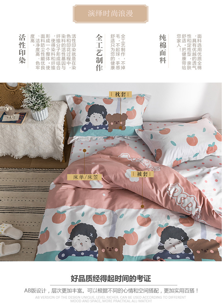 商品名称:窝米 2020春夏新品-萌系卡通风系列四件套 小桃子