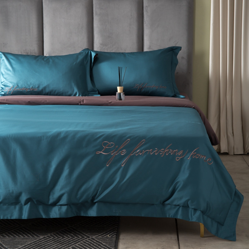 商品名称:太古汇 2020新款纯色双拼绣花四件套 月光蓝