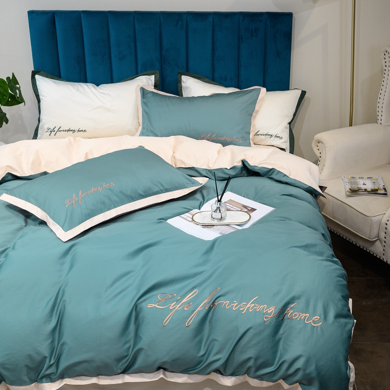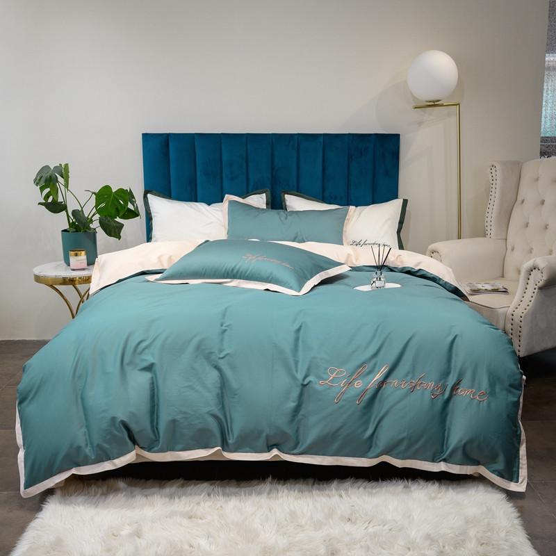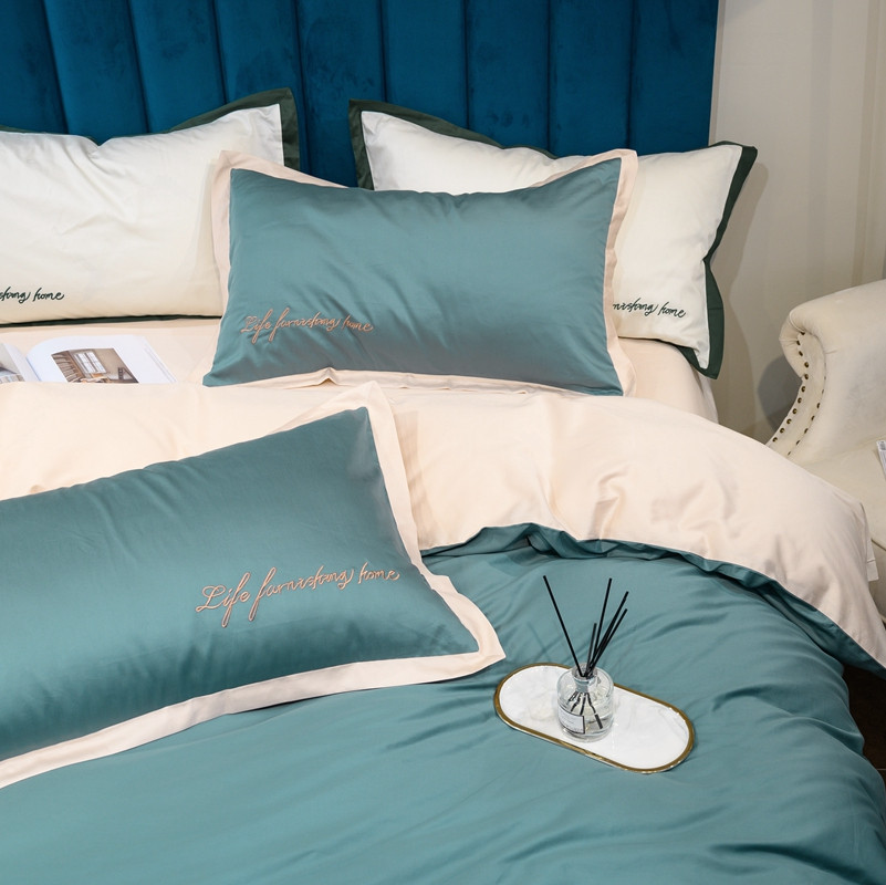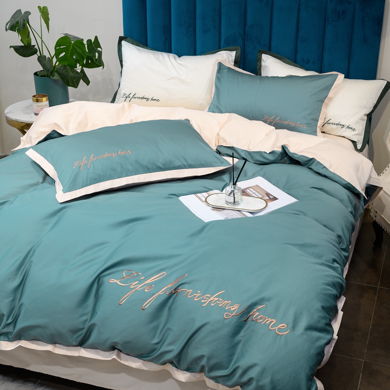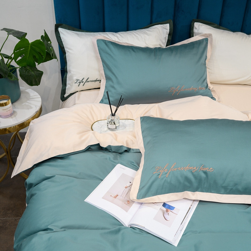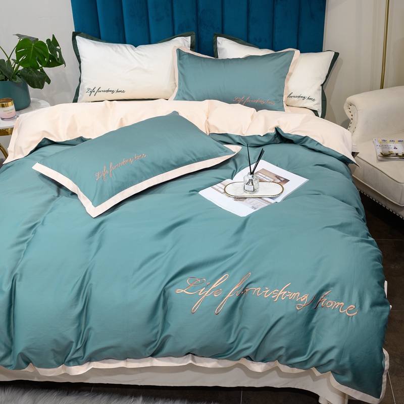 太古汇 2020新款60支贡缎长绒棉双拼四件套实拍图浅石兰