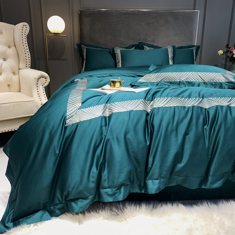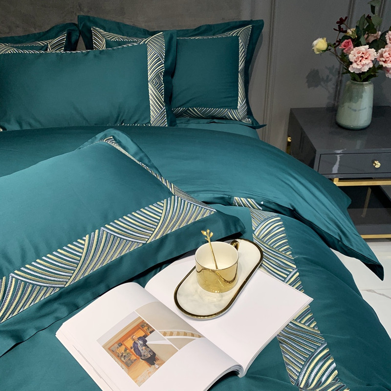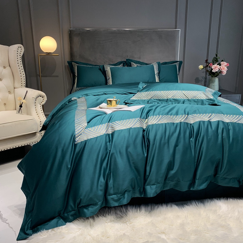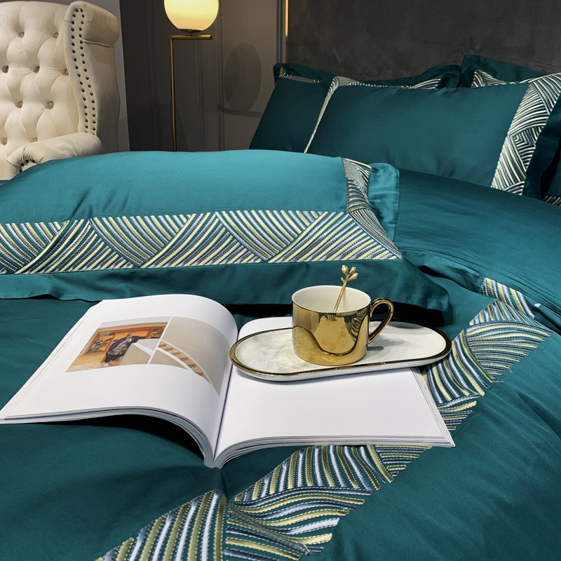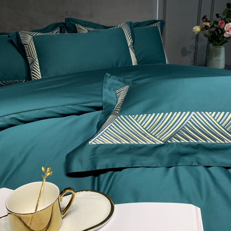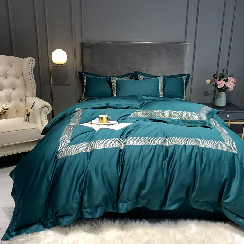太古汇 2020新款60S轻奢绣花四件套 威廉-青绿