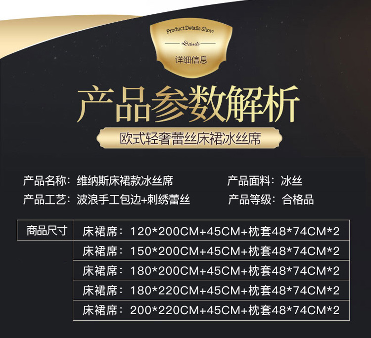 商品名称:菊上 2020新款冰丝凉席三件套维纳斯系列 香槟金