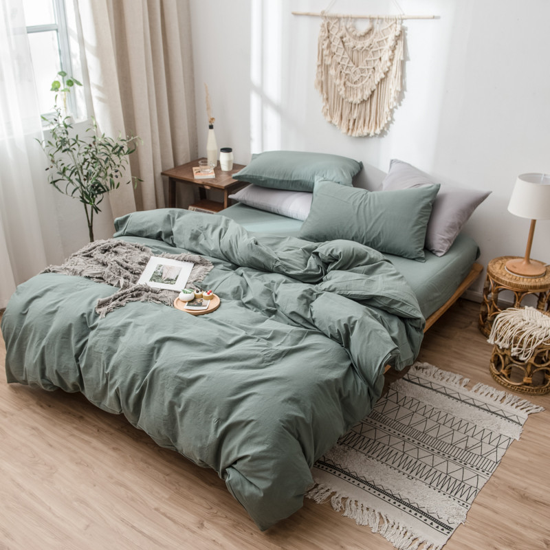 佳梦达 2020新款全棉水洗纯色单被套 松绿