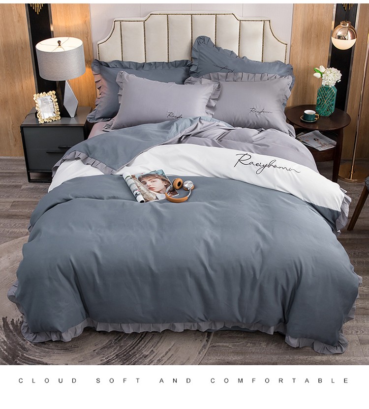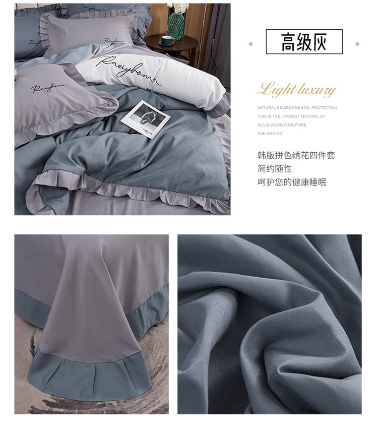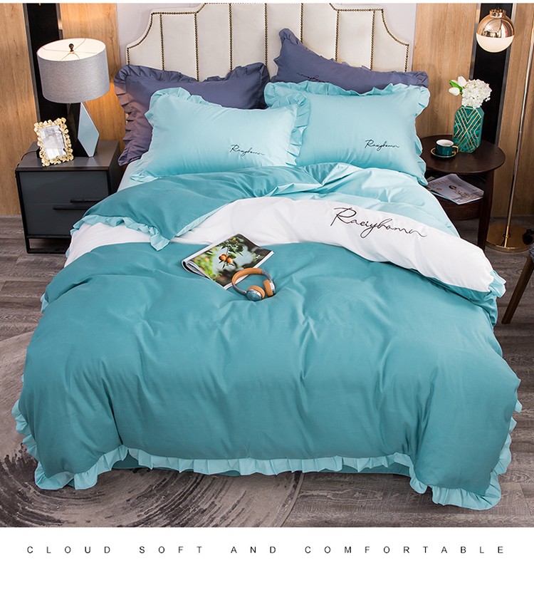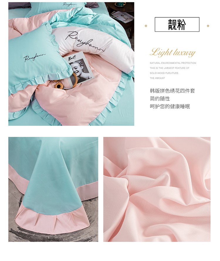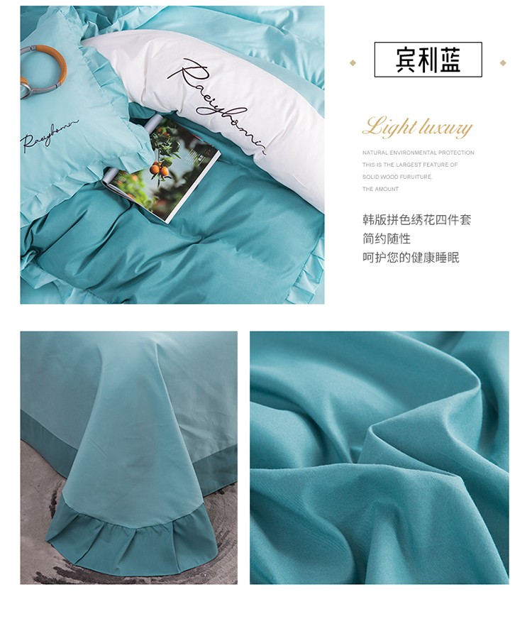 商品名称:金米诺 2020韩版荷花拼色绣花磨毛水洗棉四件套 深海兰