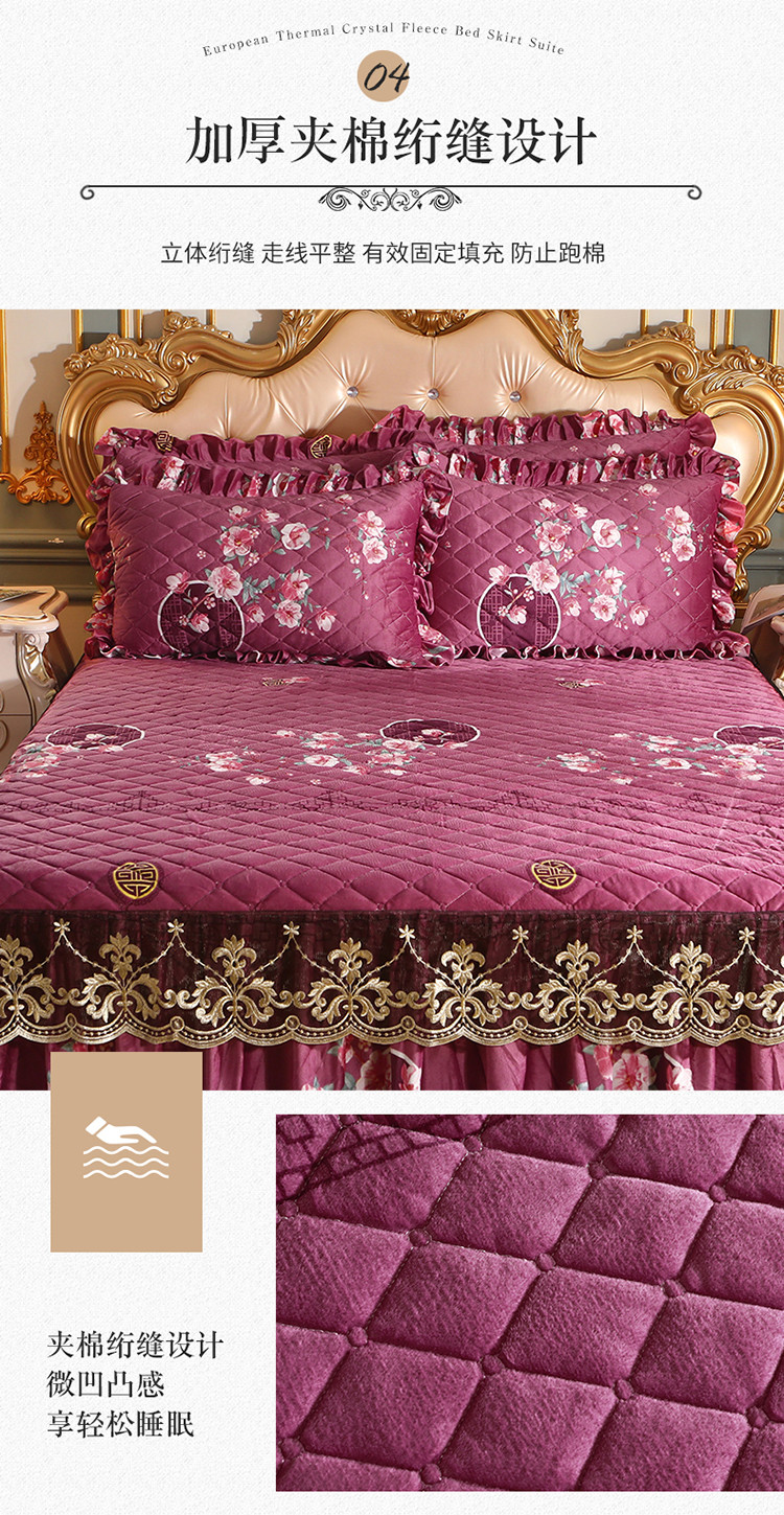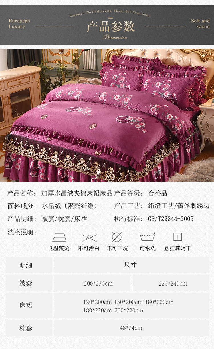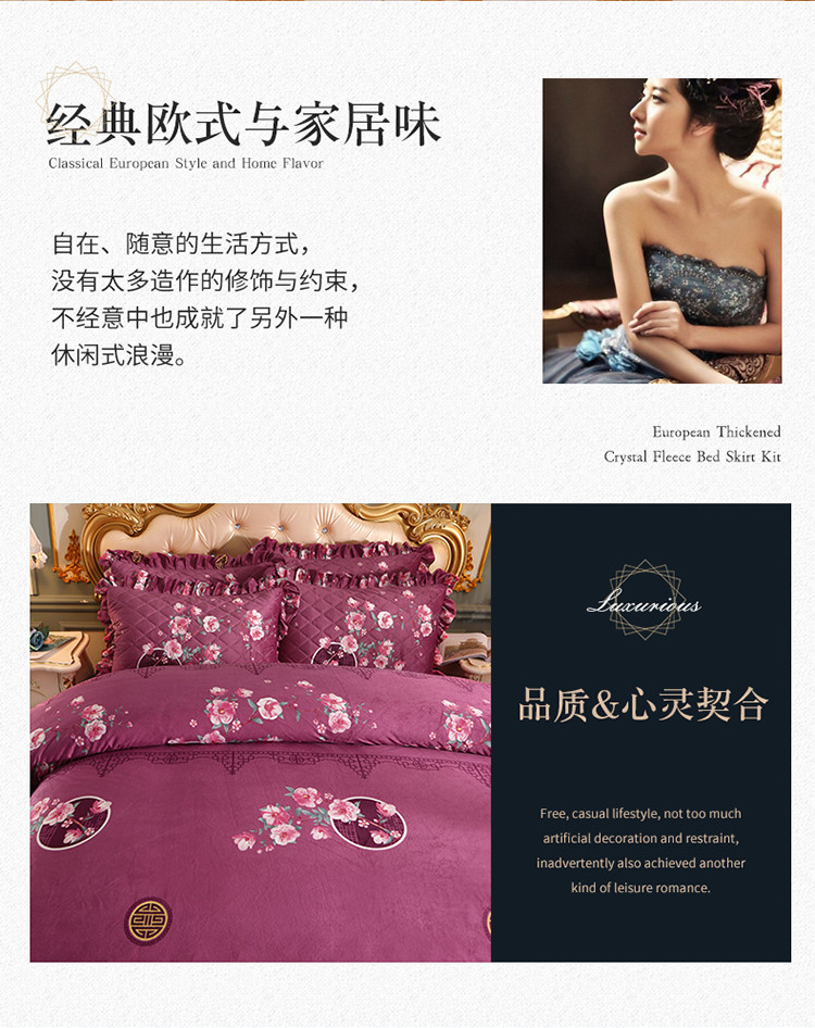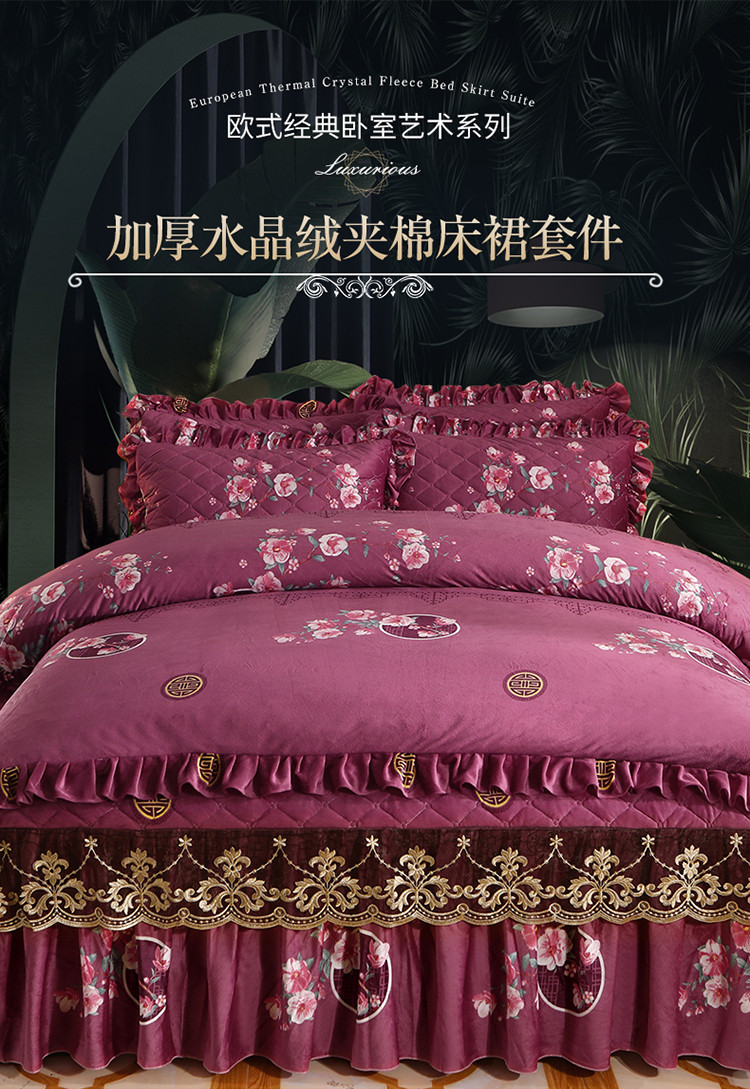 商品名称:宜凡家纺 2021新款夹棉水晶绒床裙四件套 粉黛