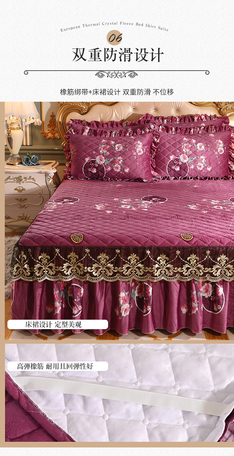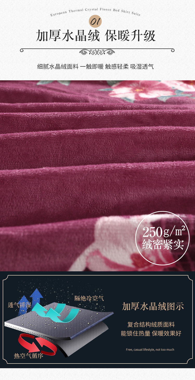 (总)宜凡家纺 2025新款婴儿绒压花全夹棉床裙四件套,韵雅-中国红,韵雅-黑天鹅