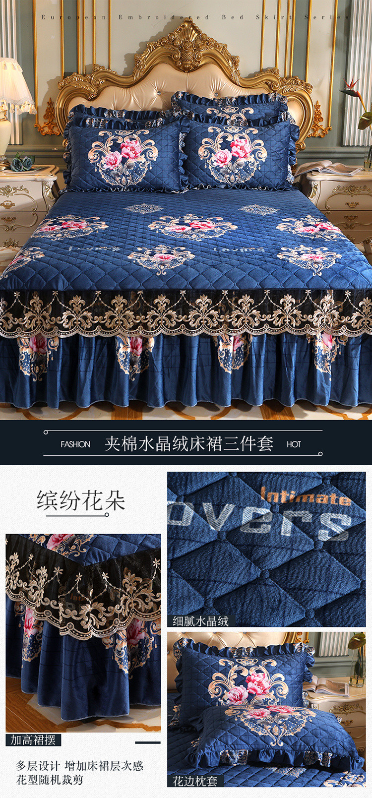 商品名称:宜凡家纺 2021新款夹棉水晶绒单品床裙 缤纷花朵