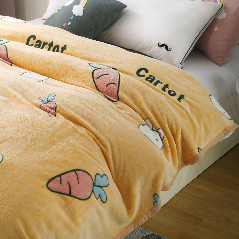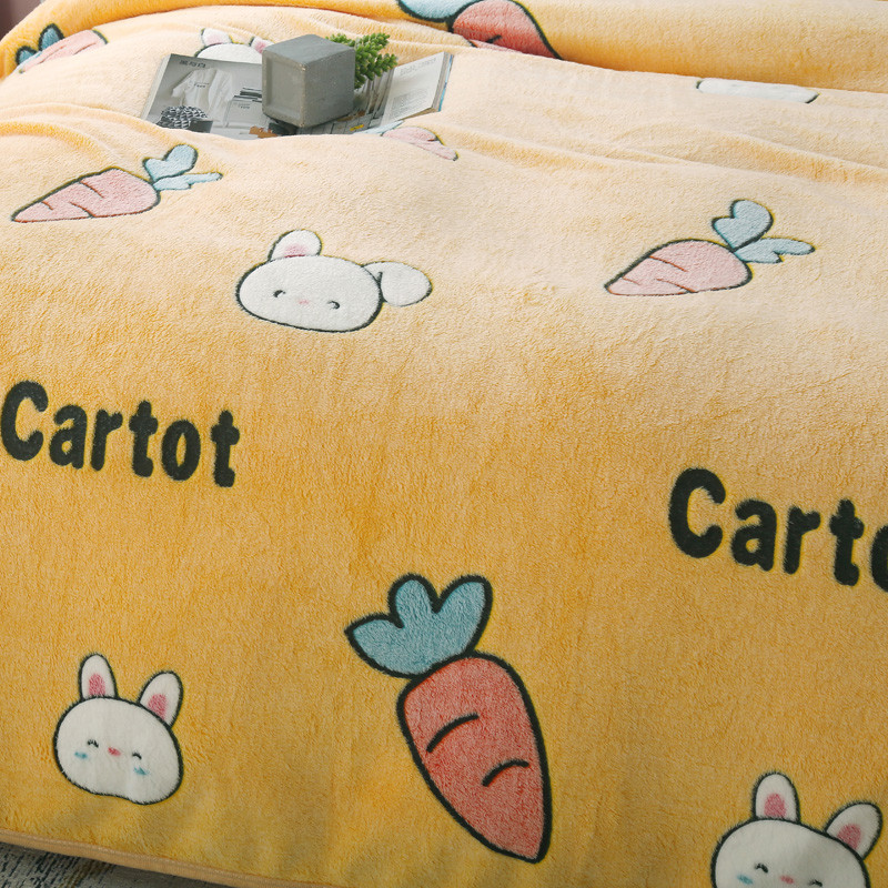 好艺佳新款240克雪花绒毯法莱绒毯床单加厚毛毯兔子萌-黄