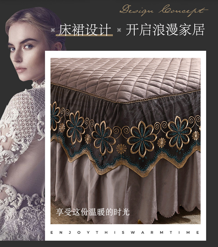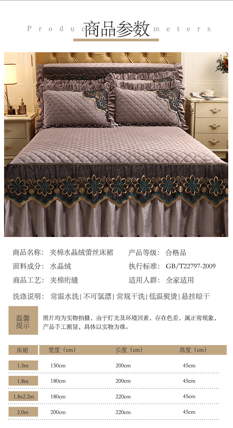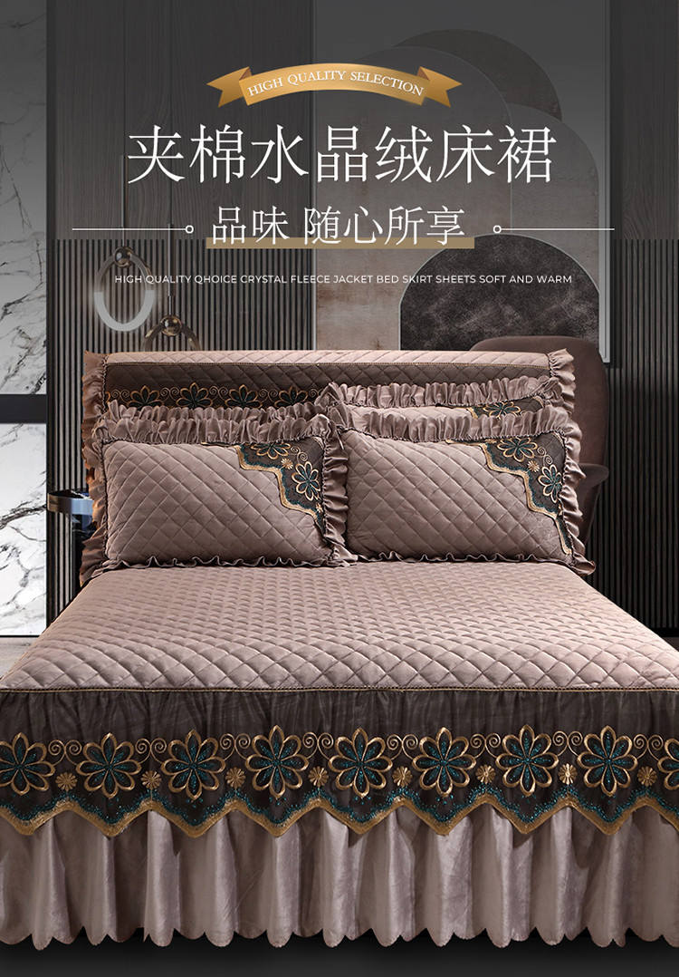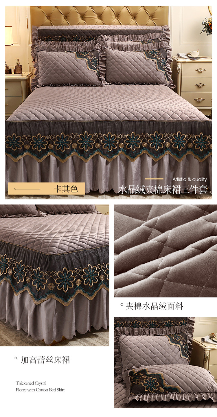 商品名称:情恒 2025新款水晶绒皇家豪庭单床裙 卡其色