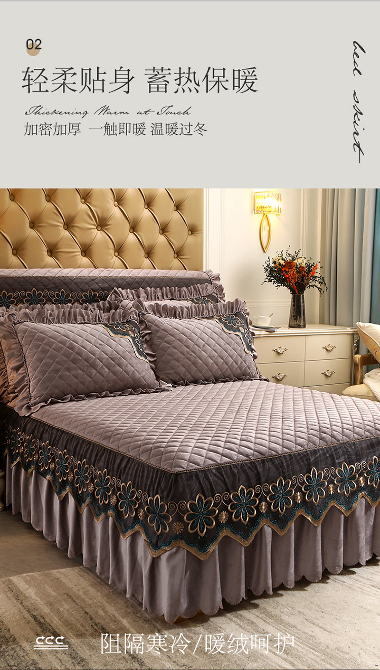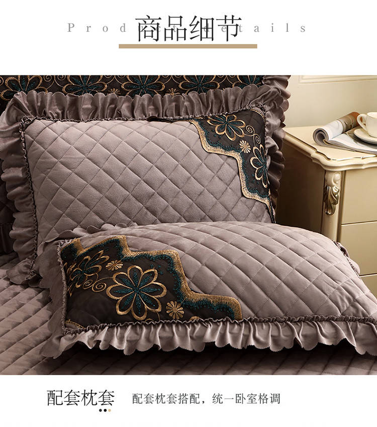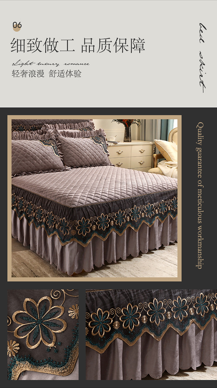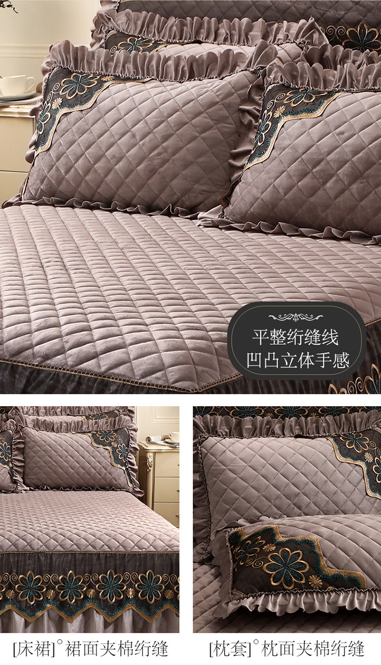 商品名称:情恒 2025新款水晶绒皇家豪庭单床裙 卡其色