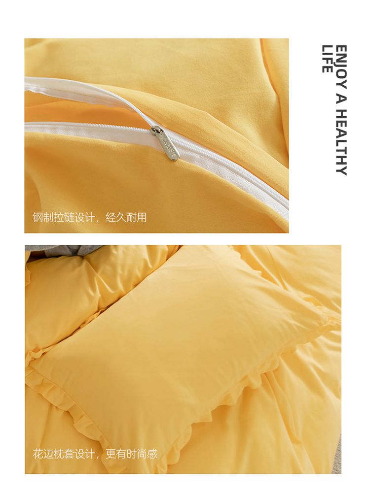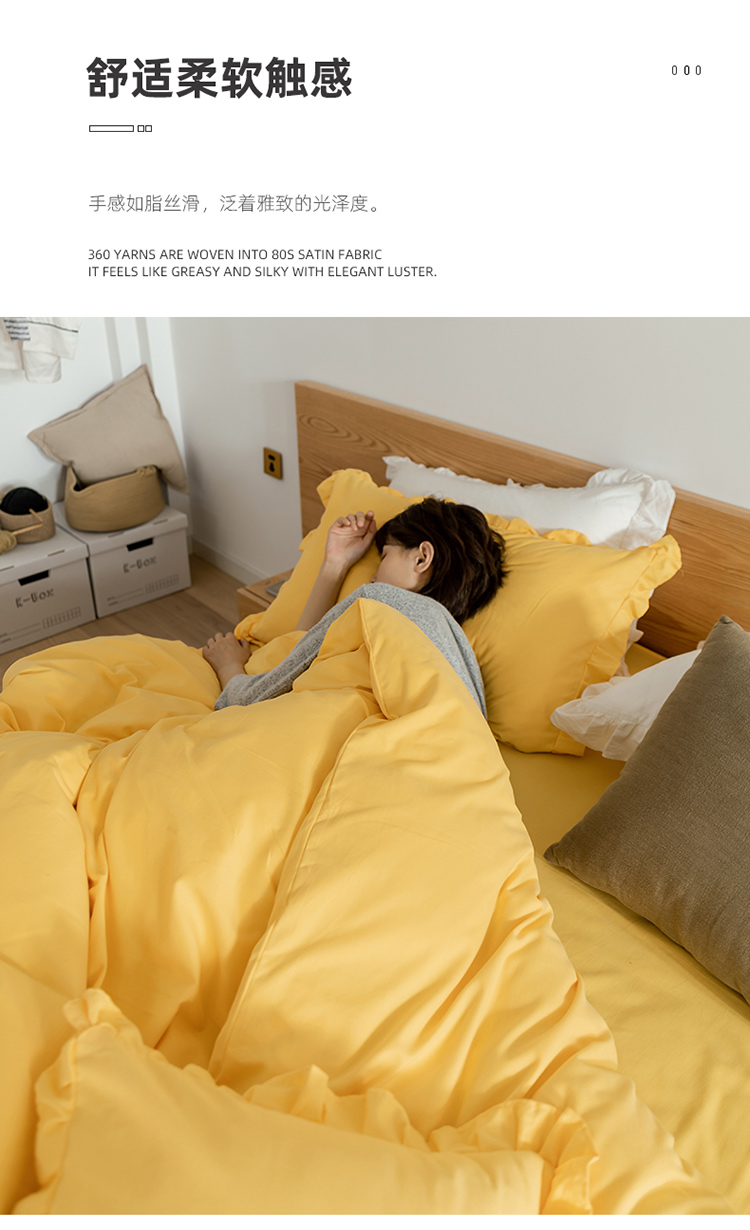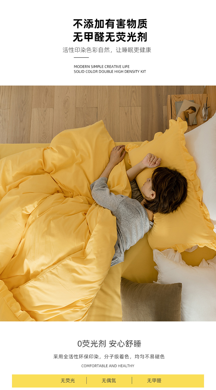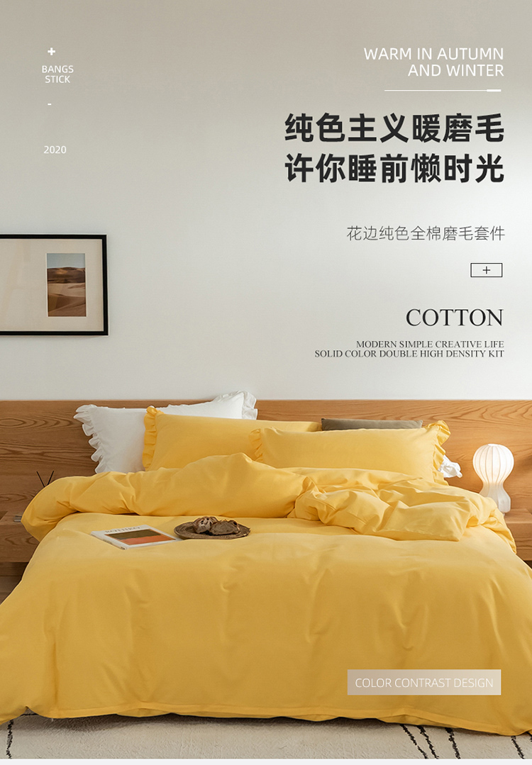 当前位置: 91家纺网 > 商品网购 > 床品套件 > 四件套 > 普通磨毛四件套 > 窝米 2020新款40s纯色磨毛四件套花边系列 杏黄