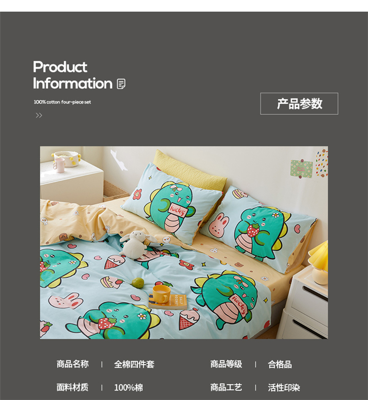 商品名称:窝米 2021新款春季全棉卡通四件套 胖胖龙