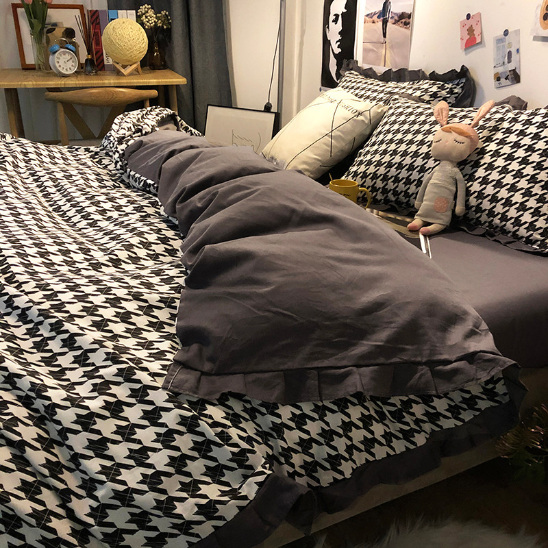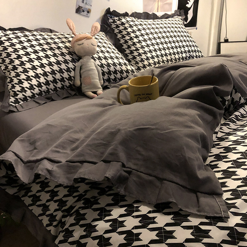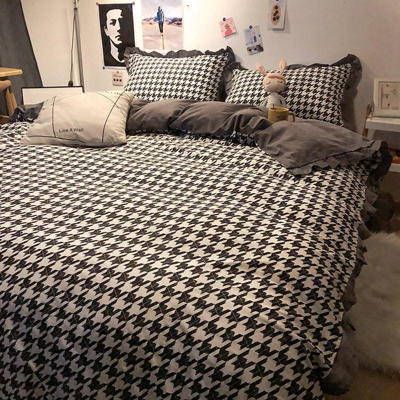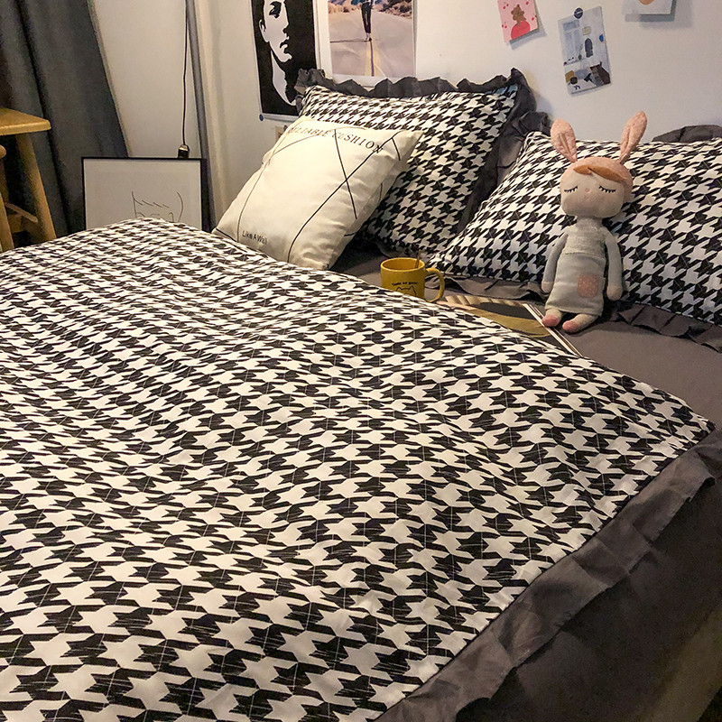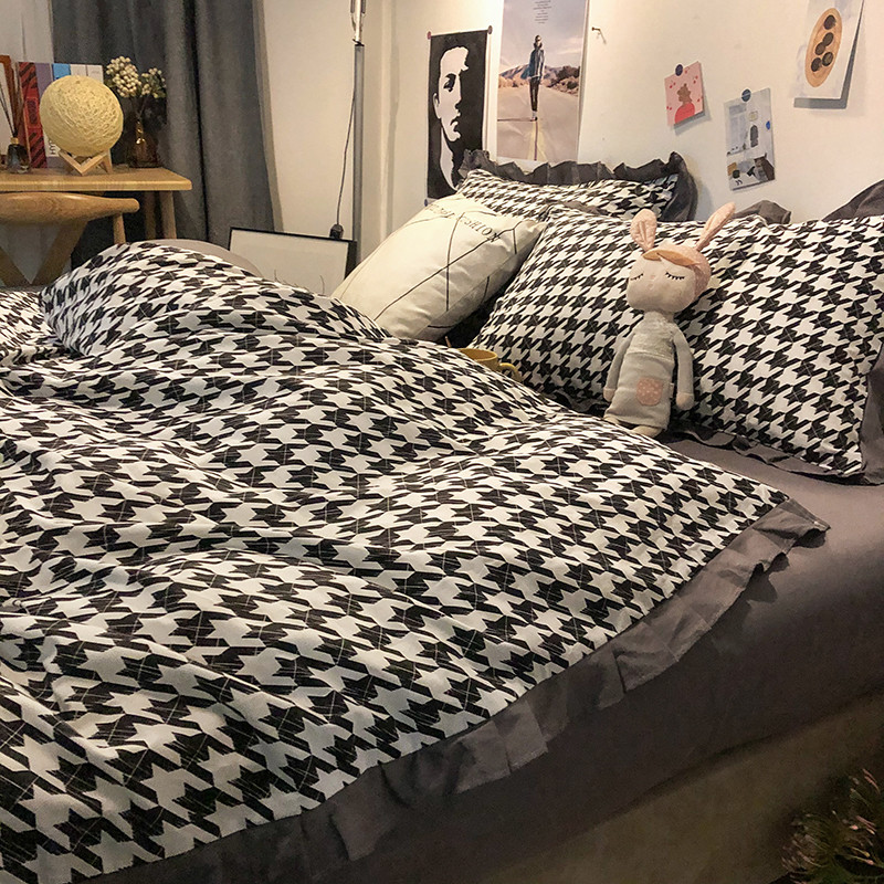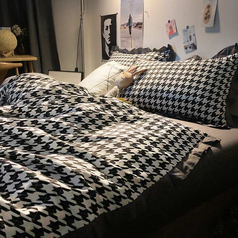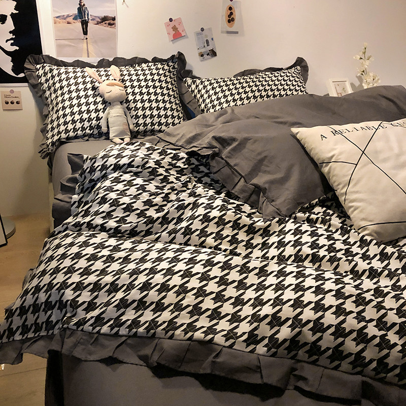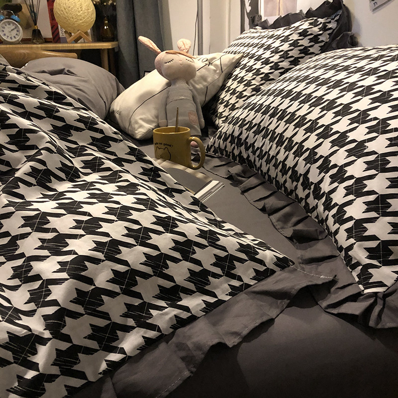 HL原创 2021新款13372全棉黑白韩版四件套 千鸟格