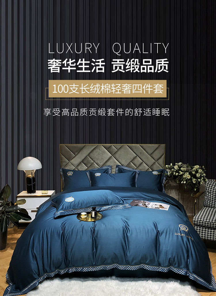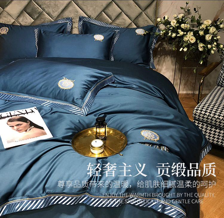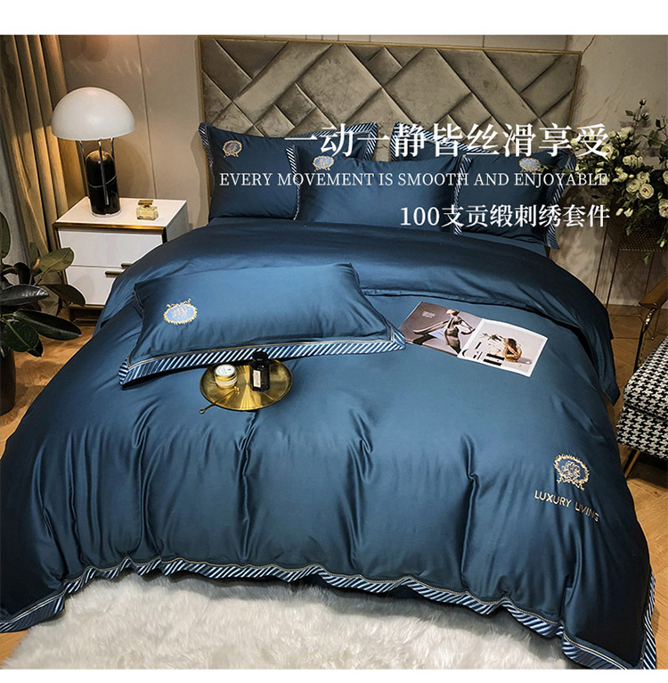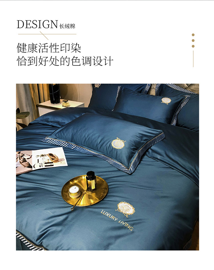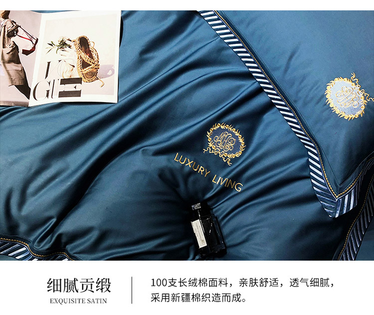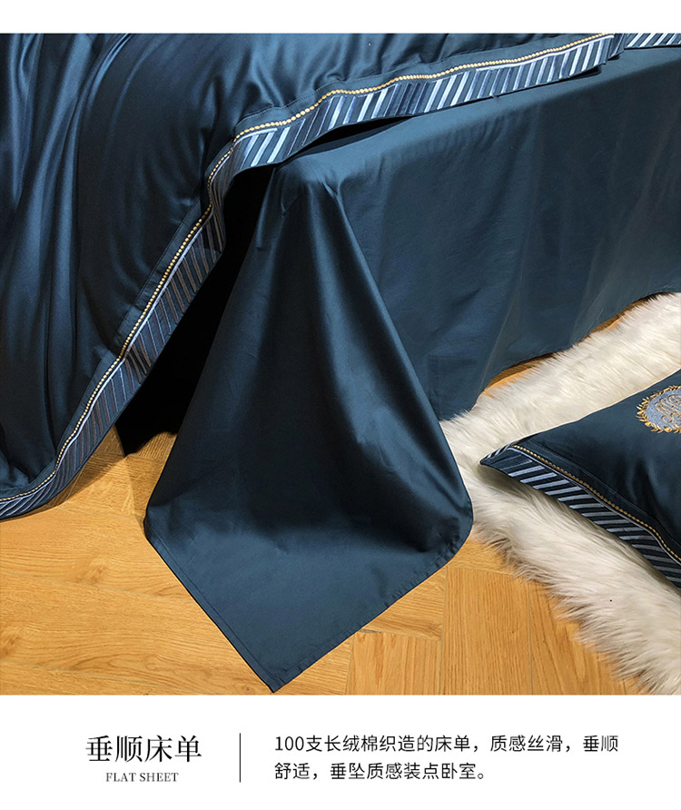 商品名称:爱缦 2021新款100s长绒棉刺绣四件套 藏青