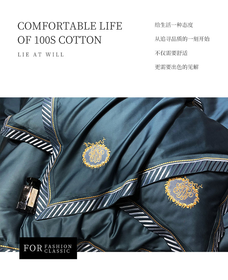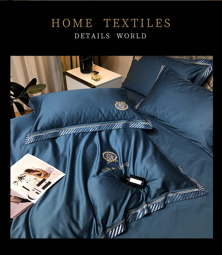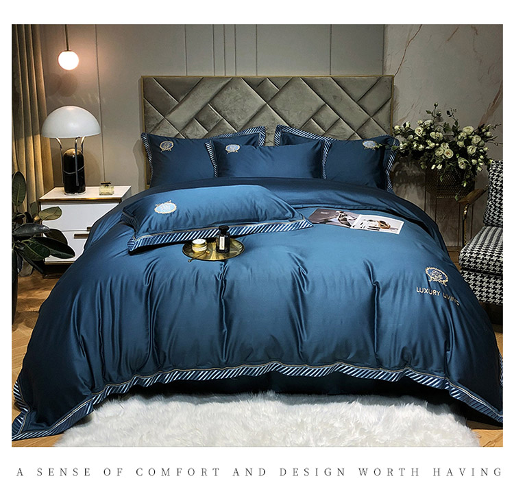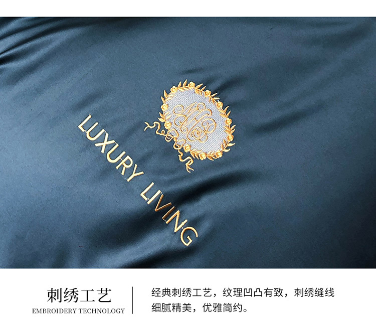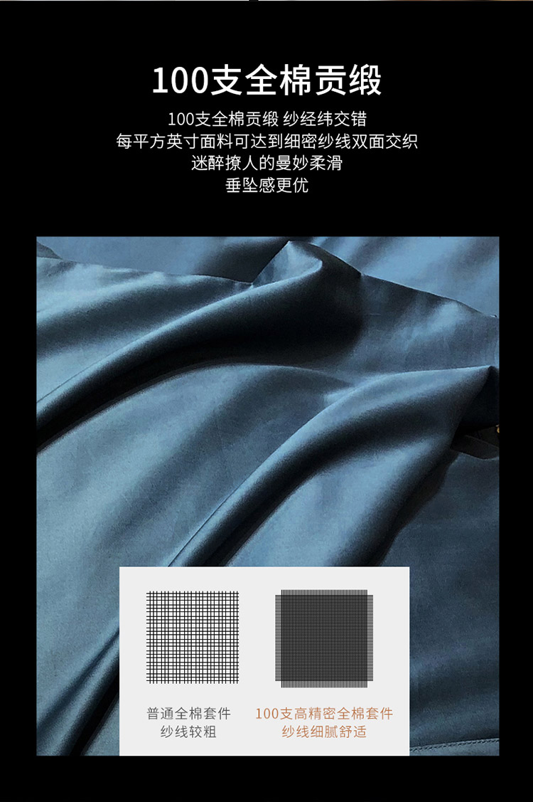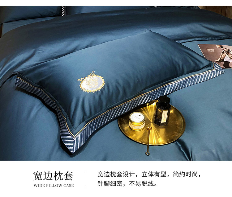 商品名称:爱缦 2021新款100s长绒棉刺绣四件套 藏青