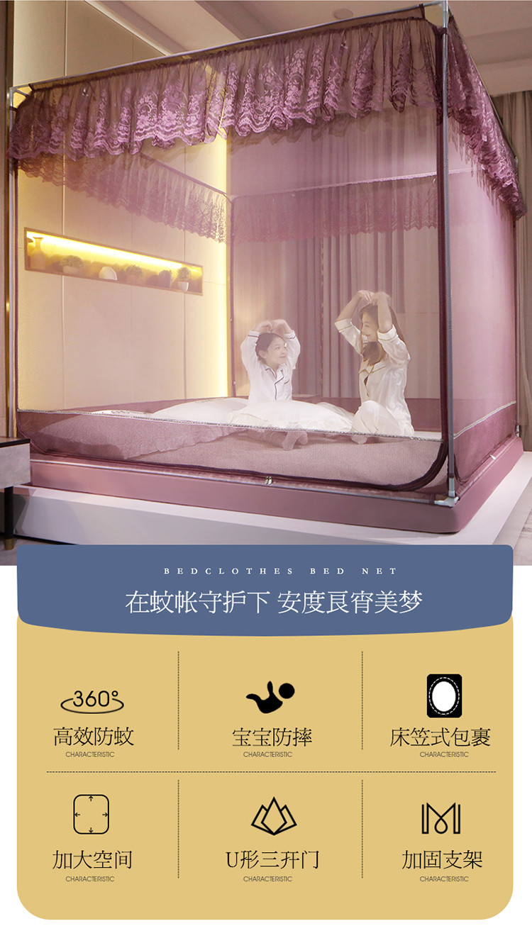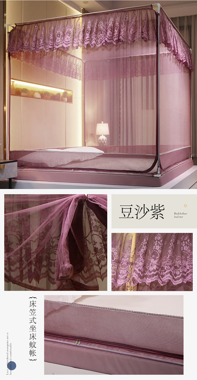 (总)夏彩 2025新款蕾丝U型防摔坐床蚊帐-88630,绿雅灰,藕玉色,香槟色