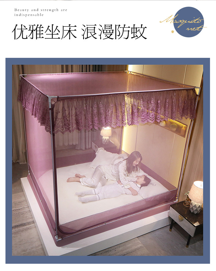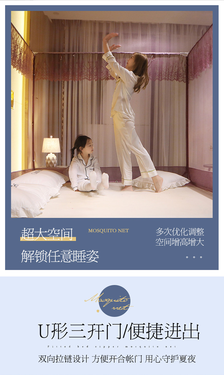 (总)夏彩 2025新款浪漫唯美T+U床笠式坐床外穿防摔蚊帐-88610,886610冰海蓝,886610极光白,886610浅粉玉,886610浅水蓝,886610蔷薇粉,886610杏仁黄,886610雅士灰