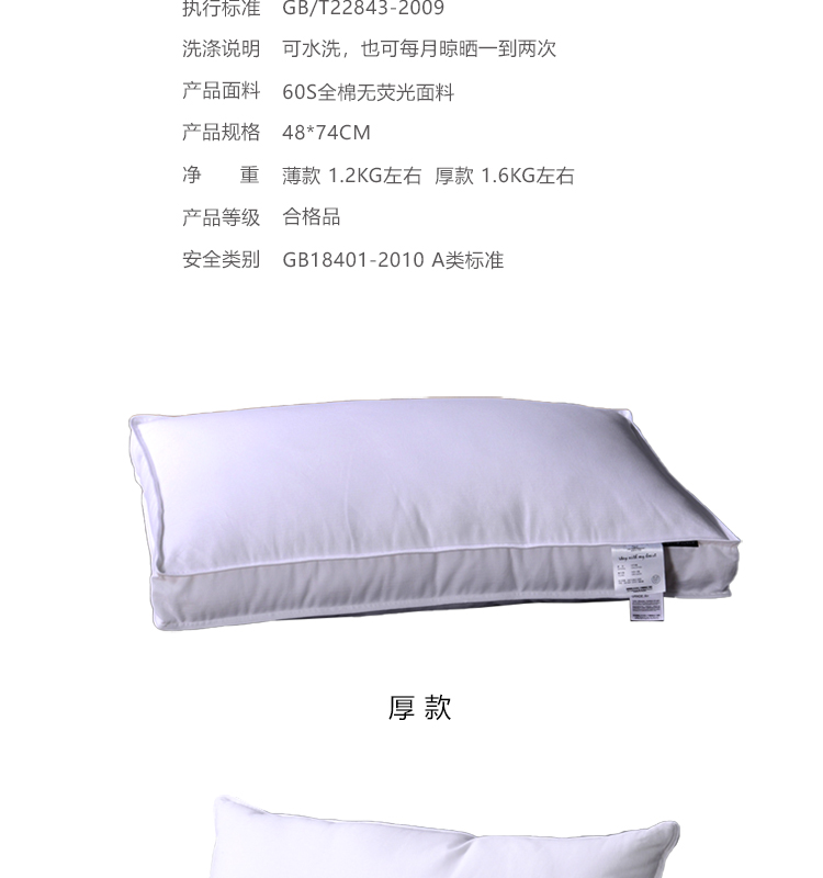 白色48x74cm高枕