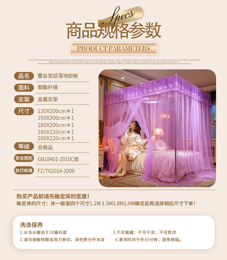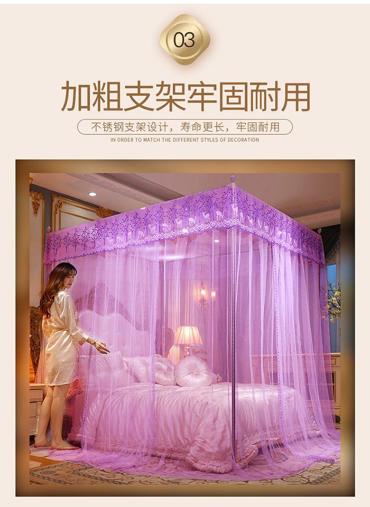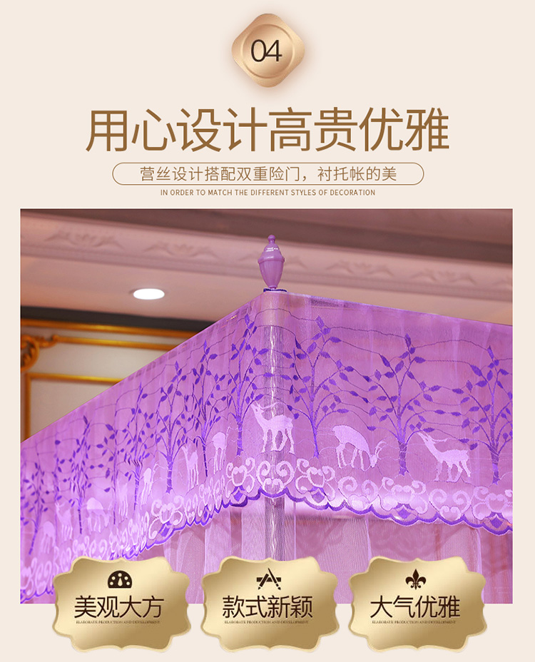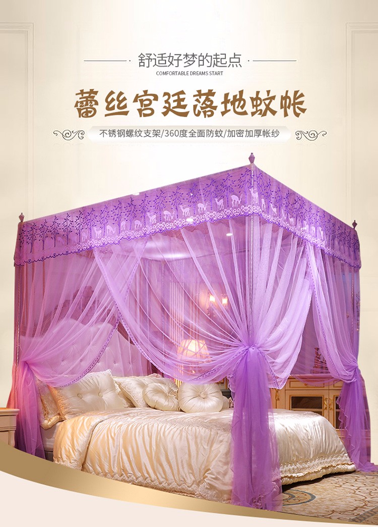 当前位置: 91家纺网 > 商品网购 > 床上用品 > 蚊帐 > 宫廷蚊帐 > 迷仙巢2022新款蕾丝宫廷落地蚊帐-C20小鹿情缘紫色