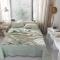 久典 新款全棉色织水洗棉大豆被夏被四件套 绿粗条