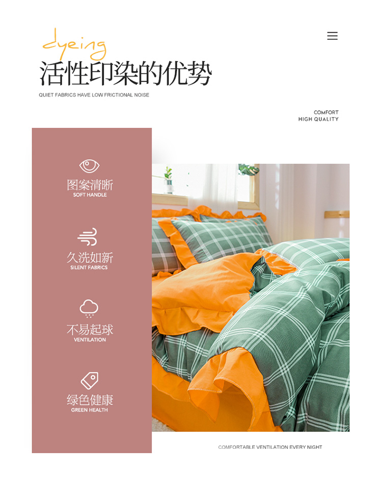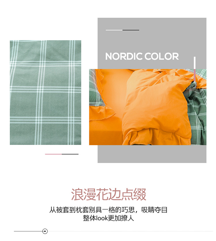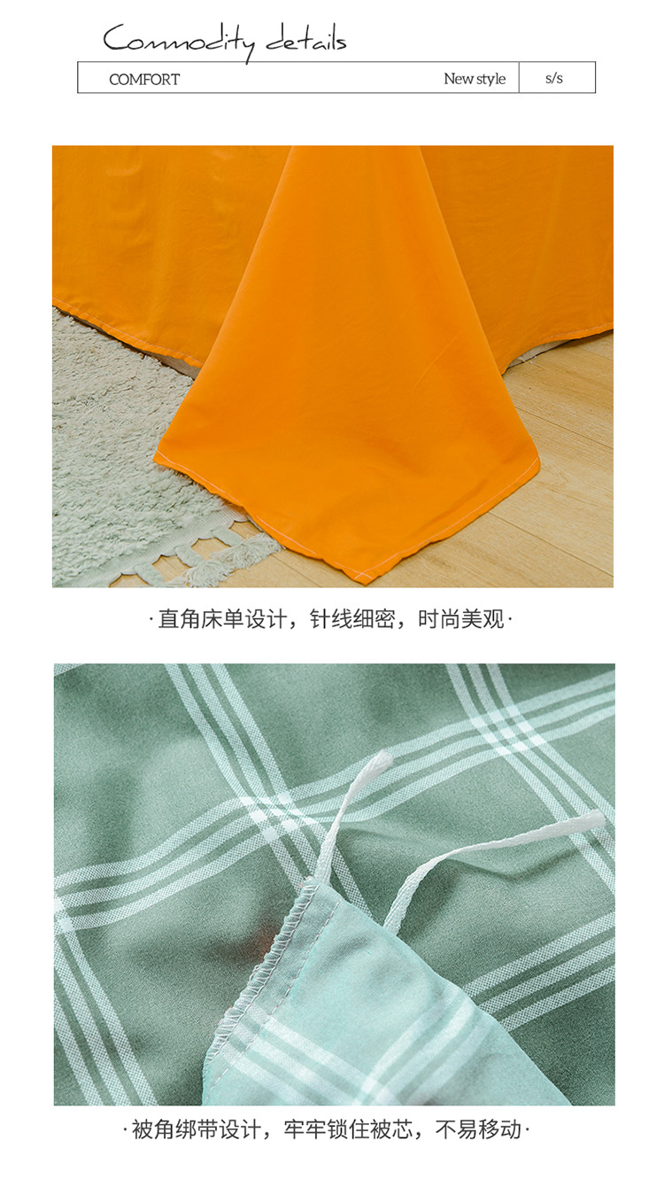 商品名称:绒兔兔 2021韩版水洗棉时尚格四件套 绿橙