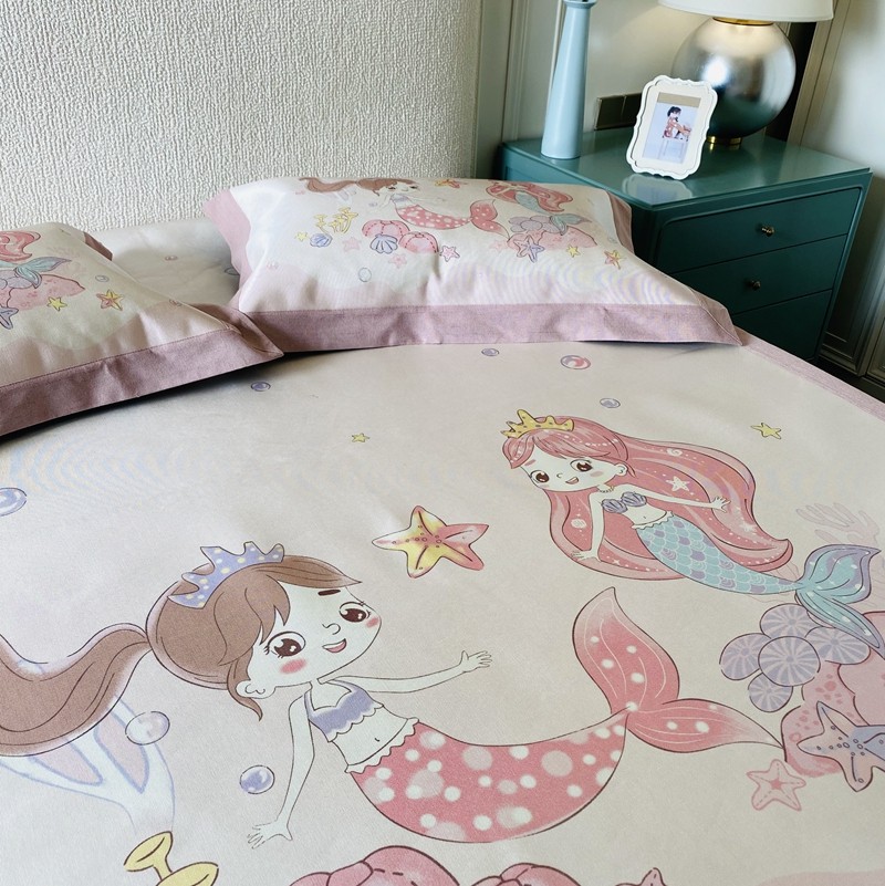 本希家居 2021新款高端可水洗冰丝席数码印花 人鱼公主