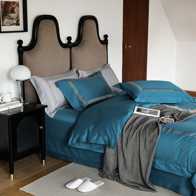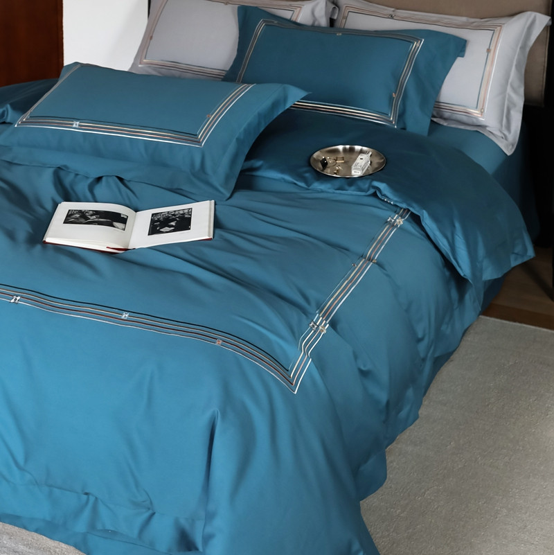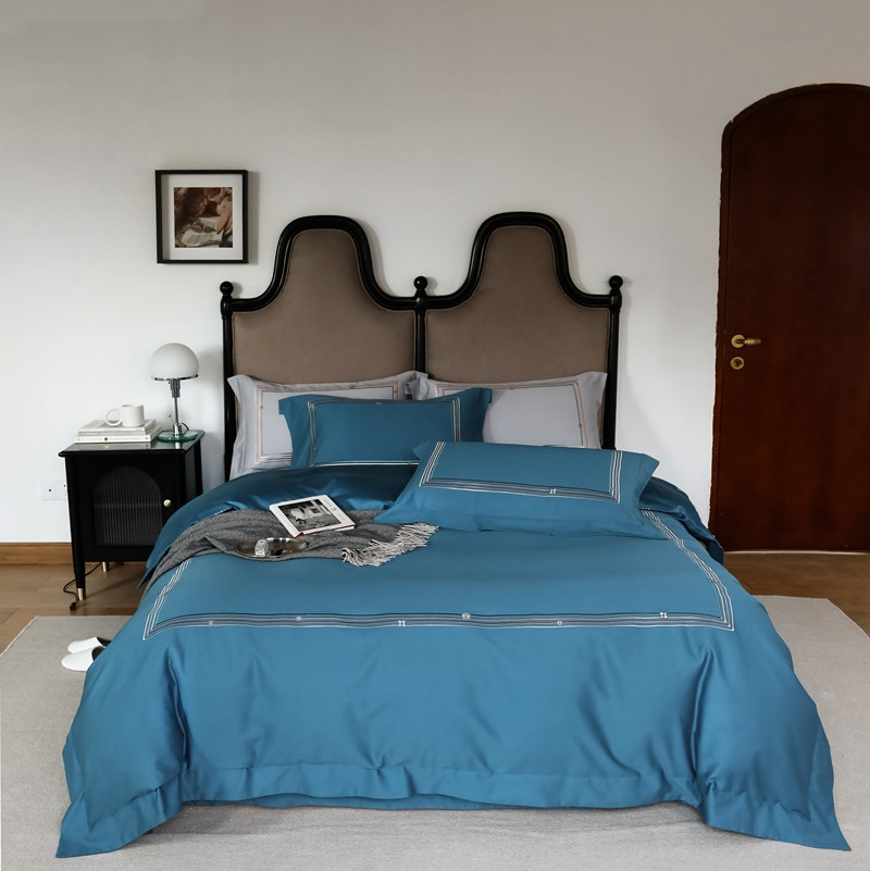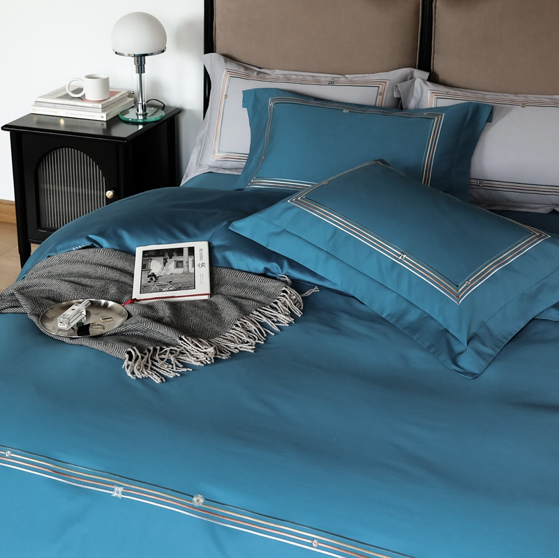 时亿家居 2021新款100支长绒棉俏四件套 银河蓝