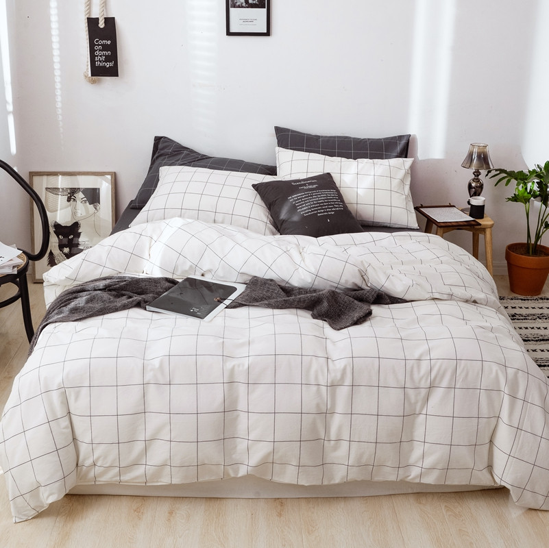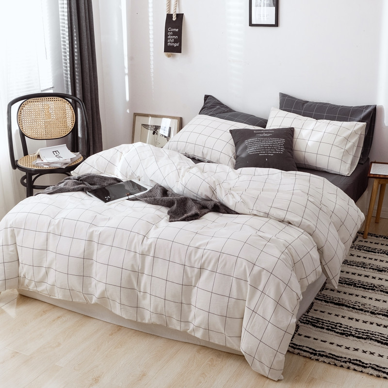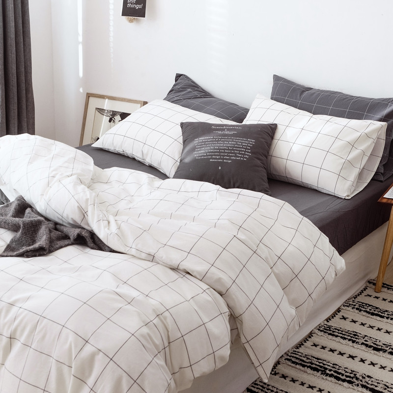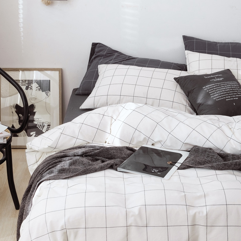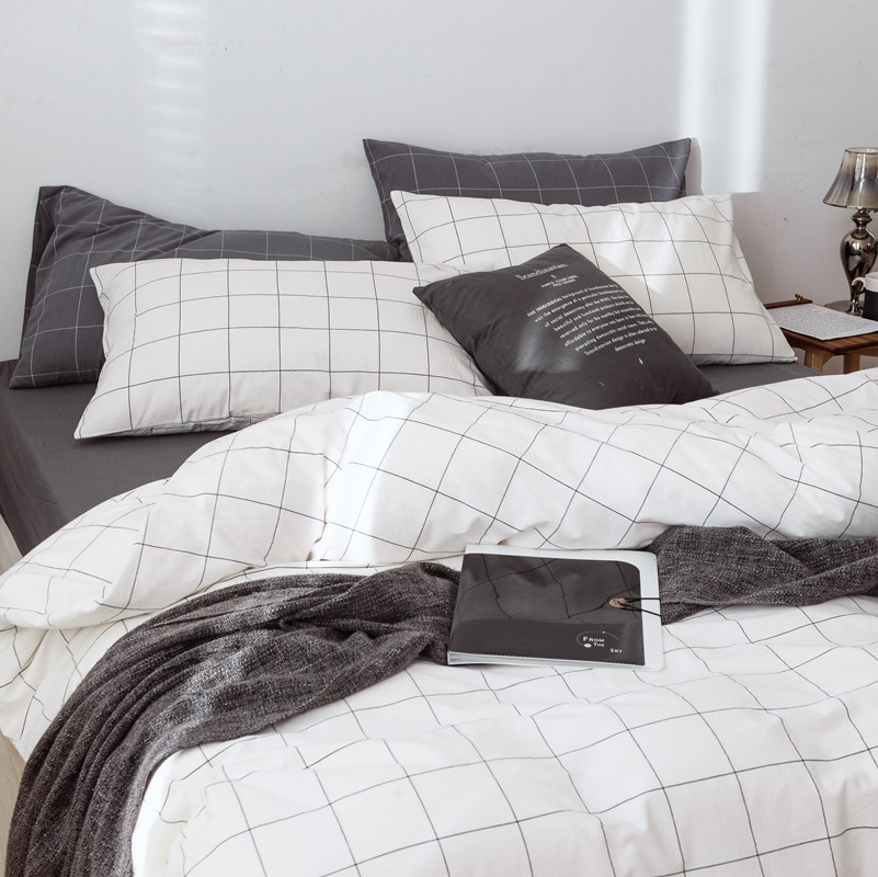当前位置: 91家纺网 > 商品网购 > 床品套件 > 四件套 > 水洗棉四件套 > 安莱生活 2021新款全棉水洗棉条纹格子四件套 白灰中格