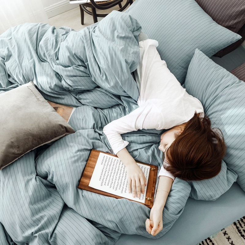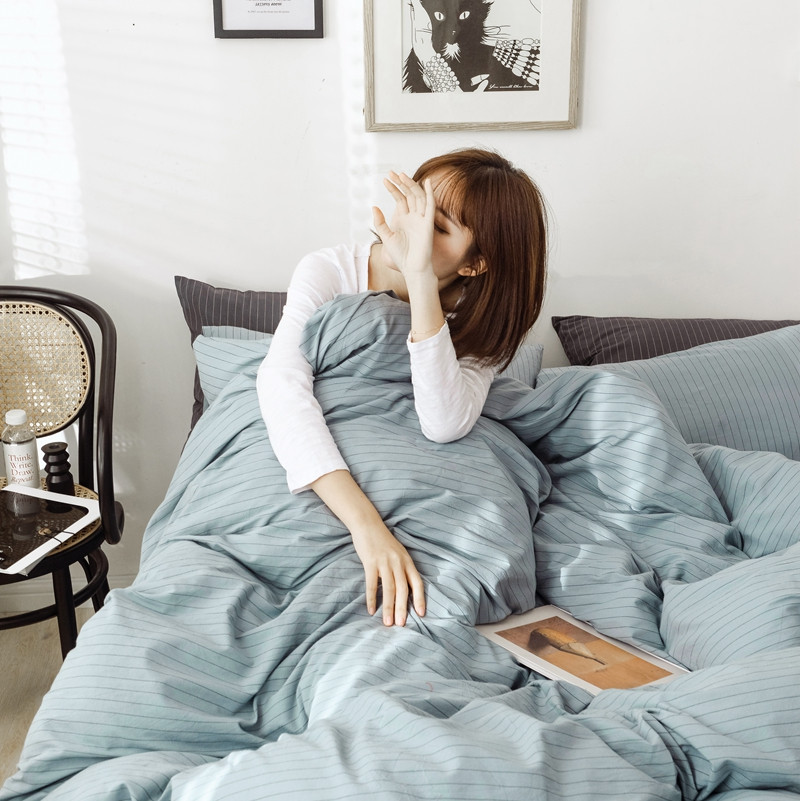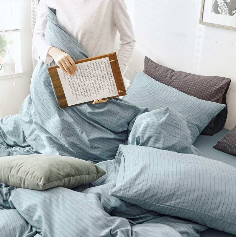 当前位置: 91家纺网 > 商品网购 > 床品套件 > 四件套 > 水洗棉四件套 > 安莱生活 2021新款全棉水洗棉条纹格子四件套 雾蓝中格