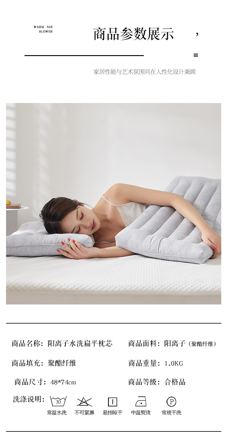 当前位置: 91家纺网 > 商品网购 > 枕头/枕芯/保健枕/颈椎枕 > 普通枕芯 > 梦叶草 2021新款阳离子水洗扁平枕芯 灰