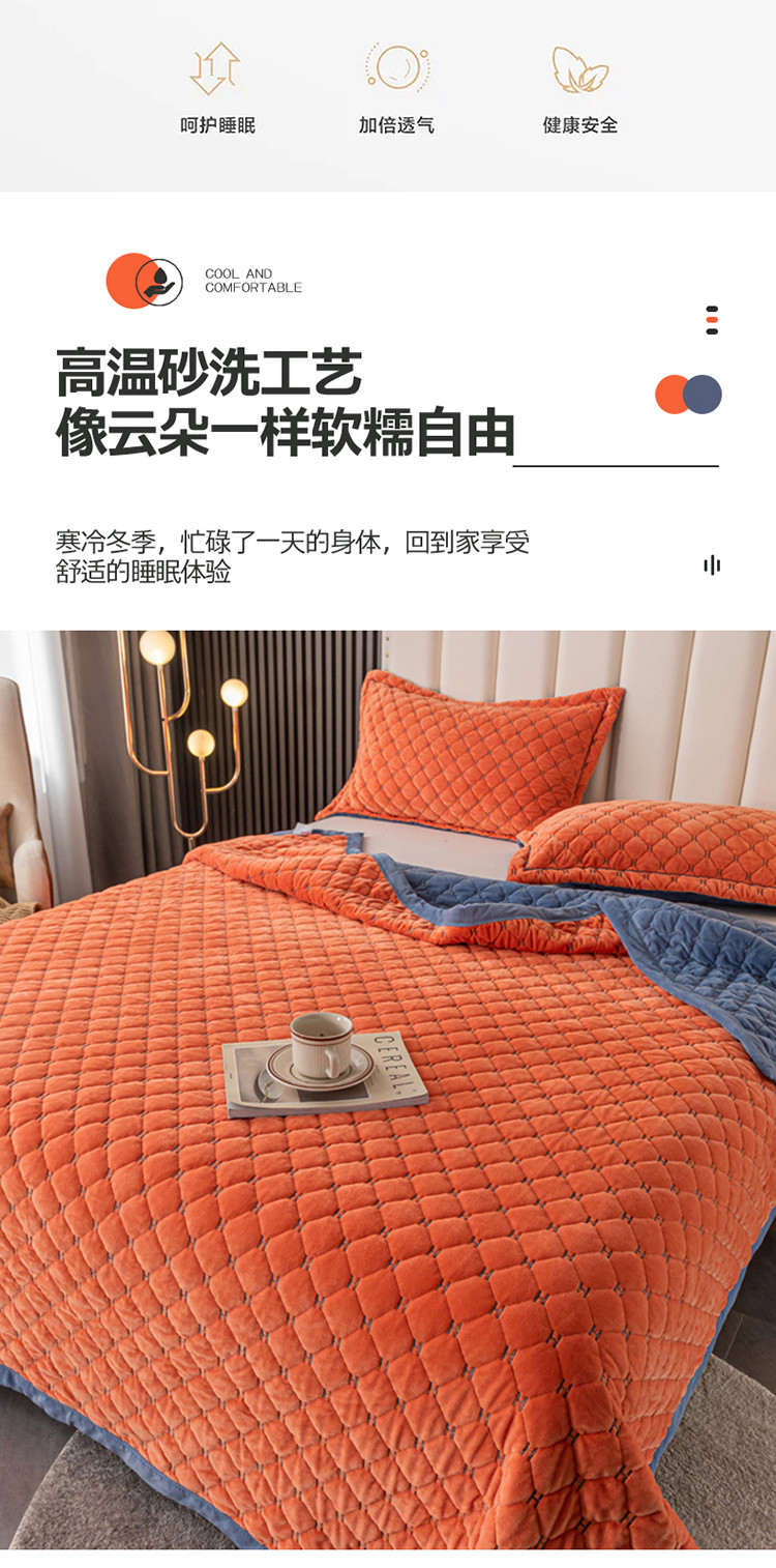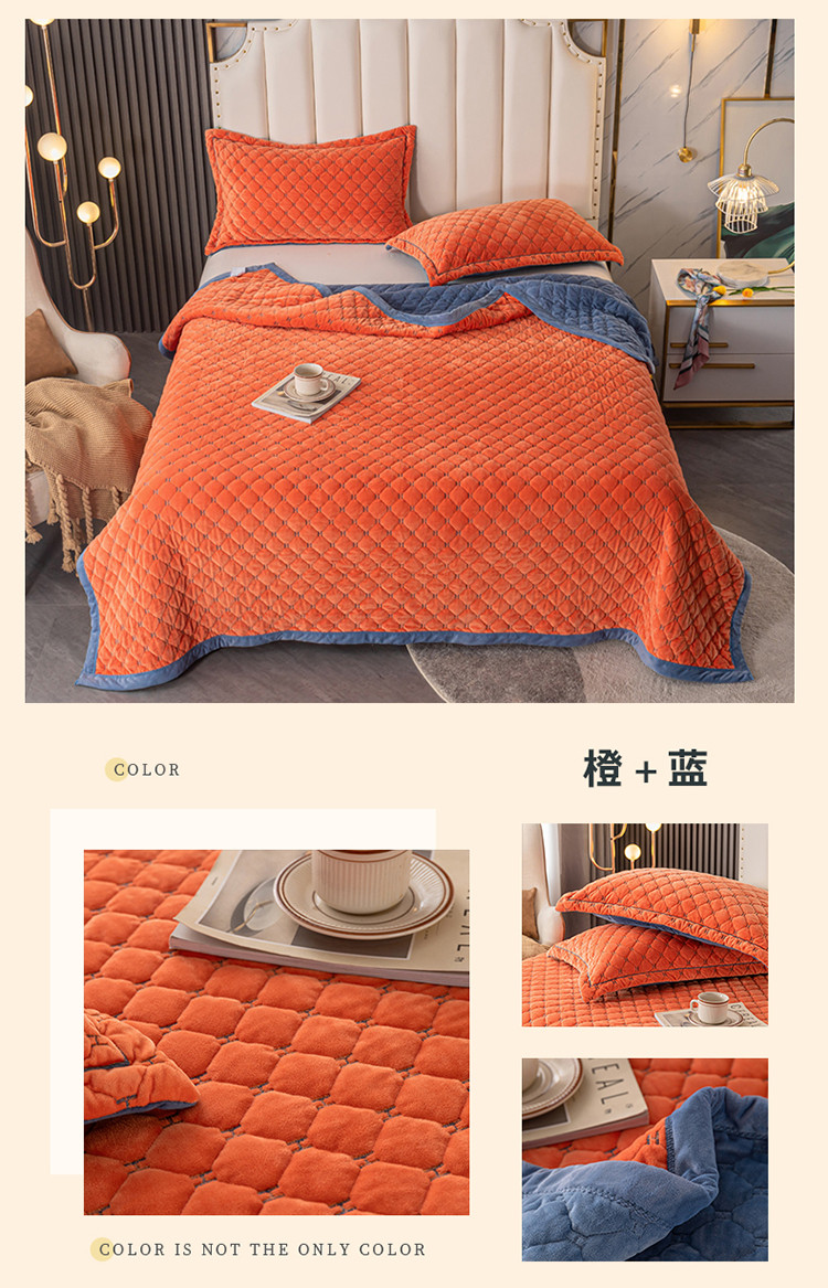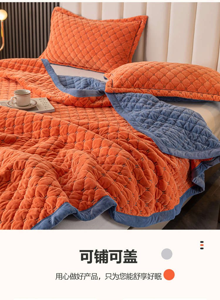 卡奥家纺2023新款水晶绒绣花毛毯盖被双层夹棉加厚床盖橙+蓝