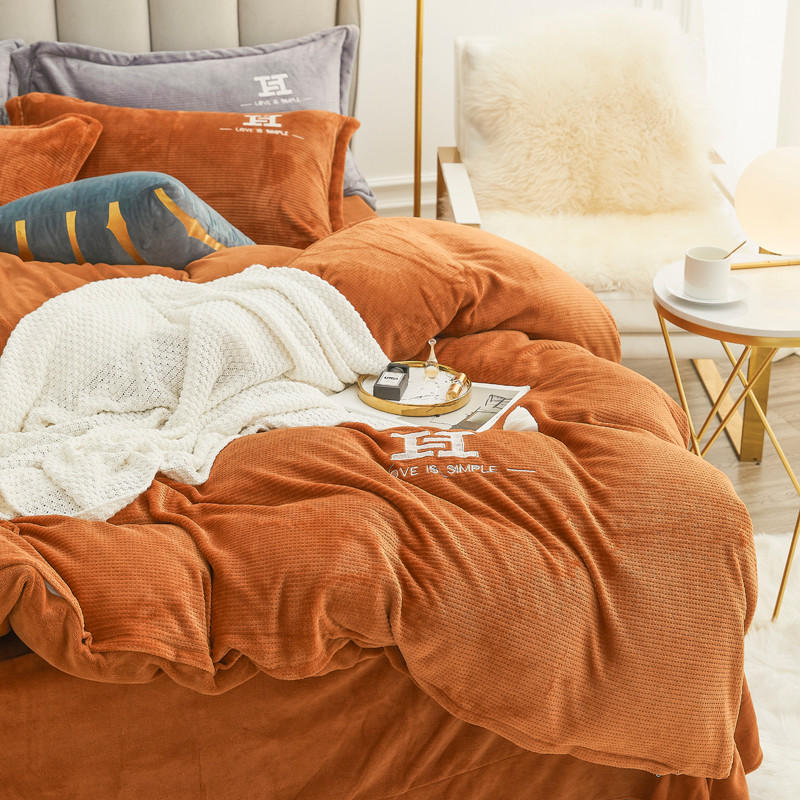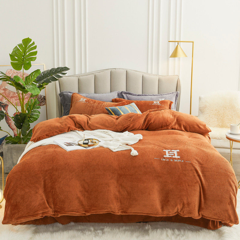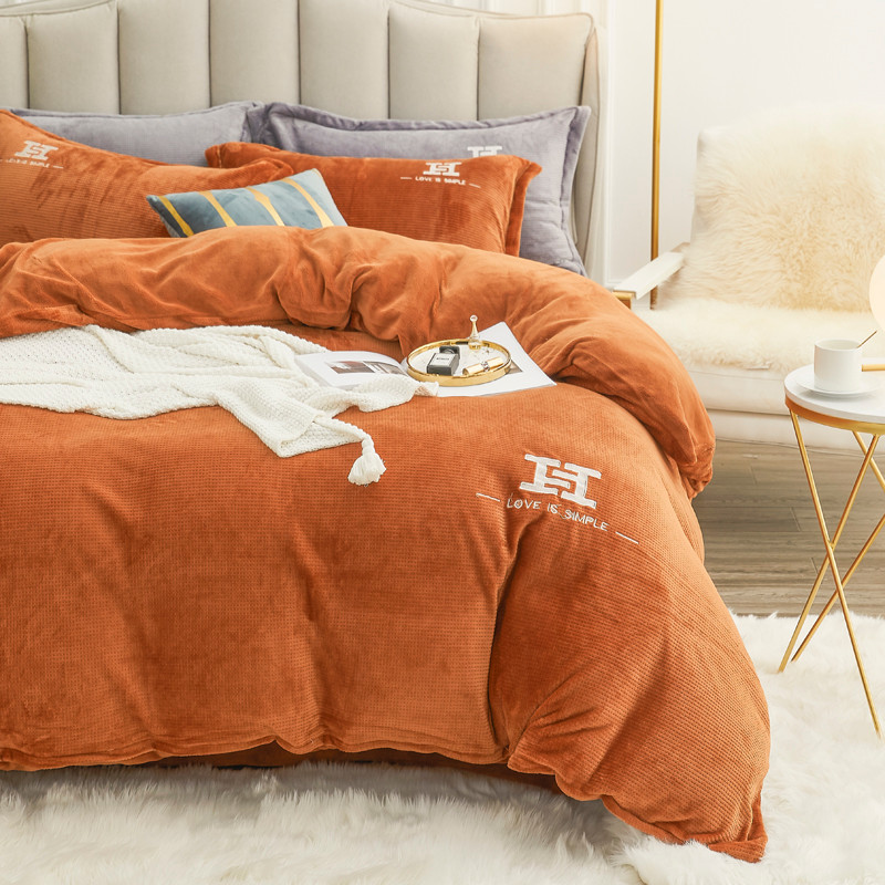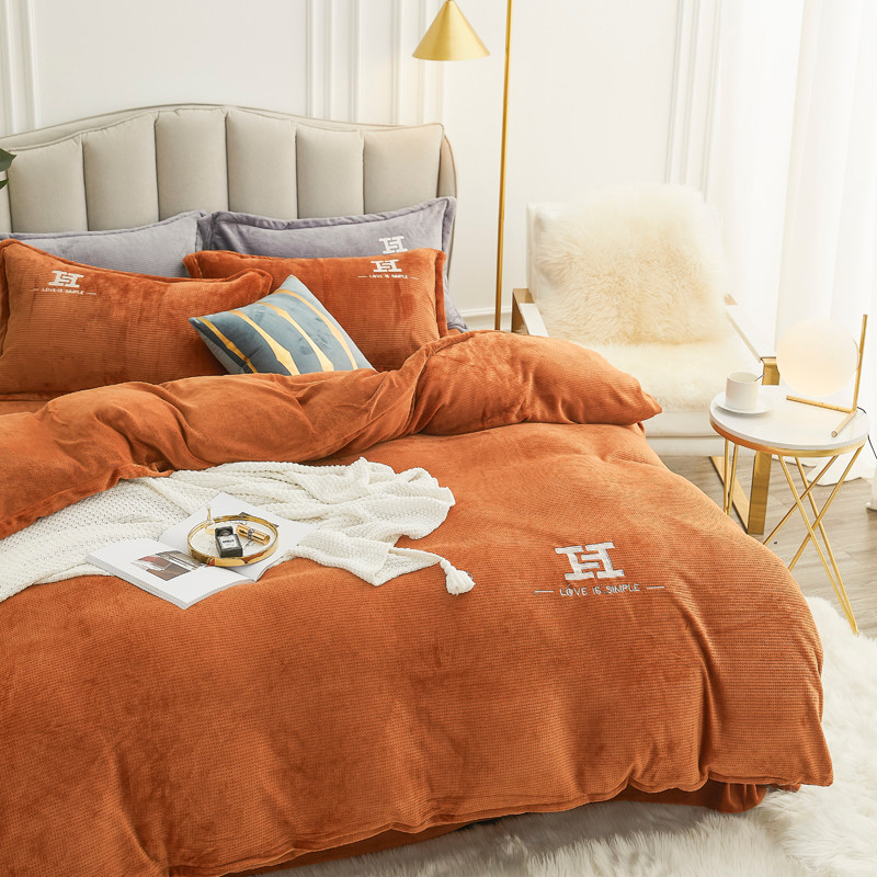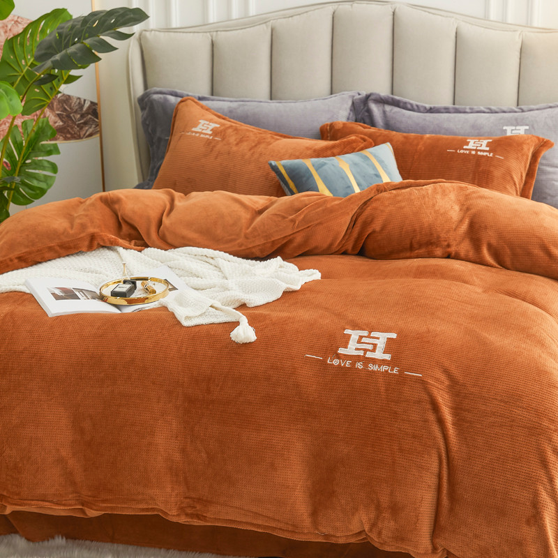 商品名称:锦罗绣 2021新款牛奶绒绣花四件套 love桔