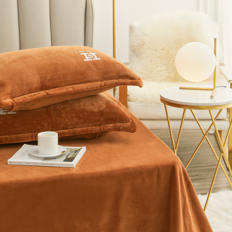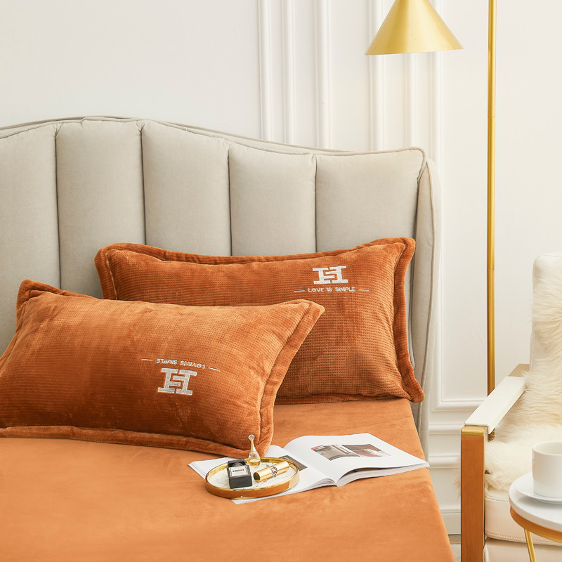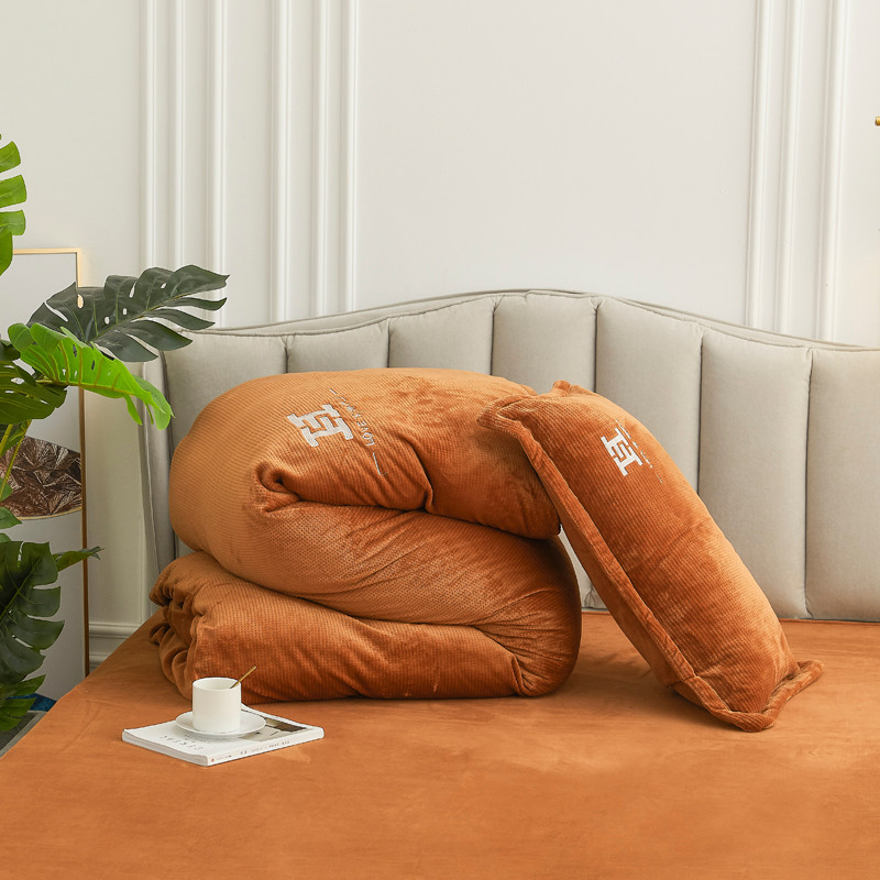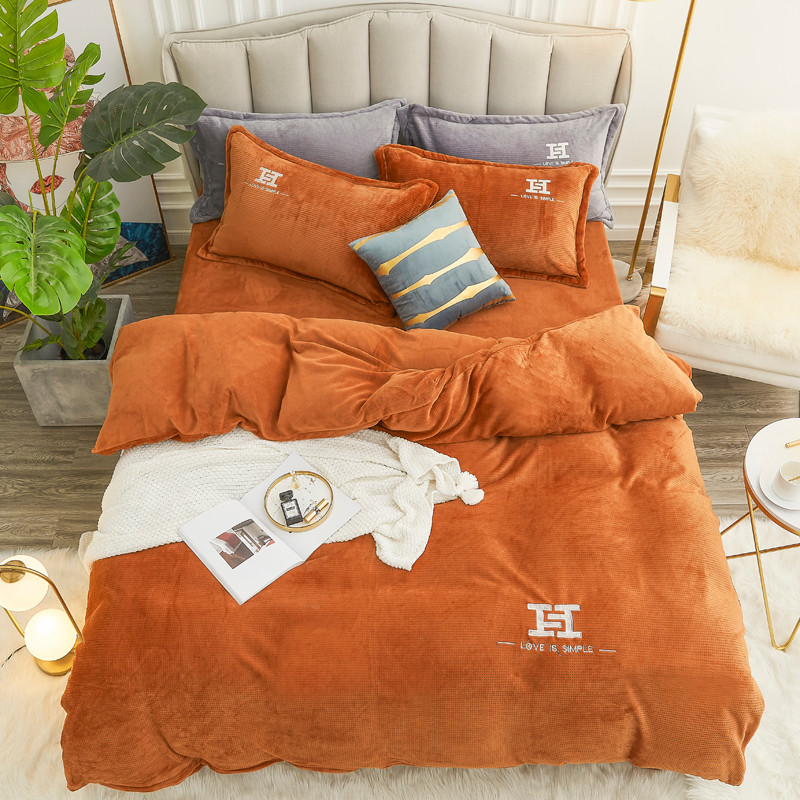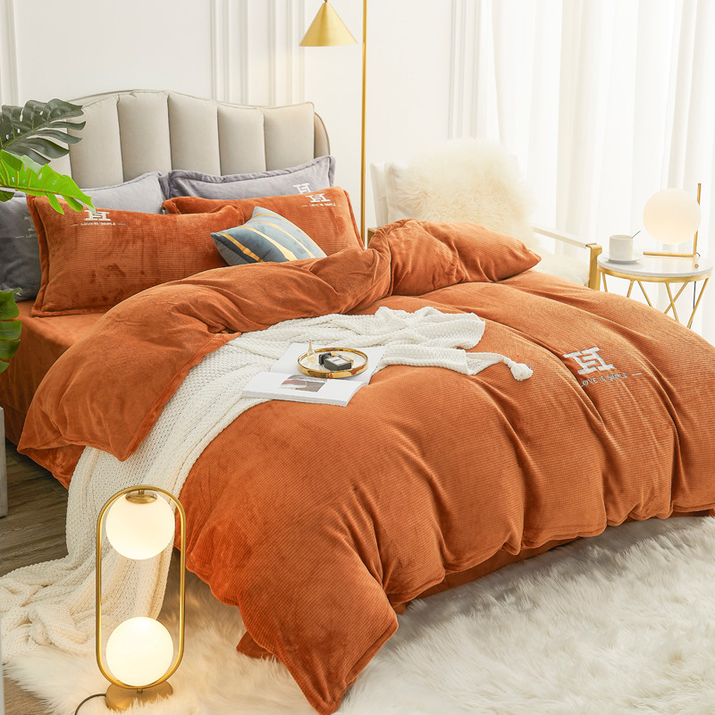 商品名称:锦罗绣 2021新款牛奶绒绣花四件套 love桔