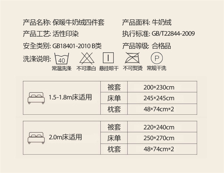 1.8米(被套200*230cm)床单款四件套 | ¥135.00 |