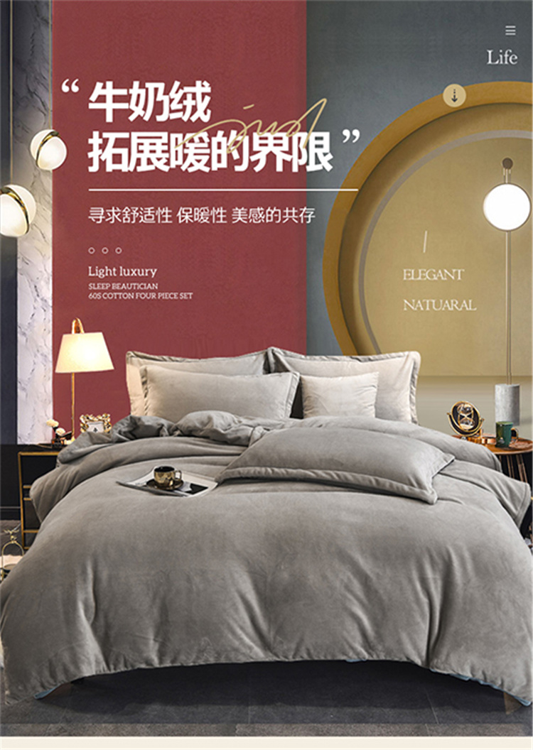 当前位置: 91家纺网 > 商品网购 > 床品套件 > 四件套 > 牛奶绒四件套 > 锦罗绣 2024新款230克牛奶绒纯色四件套银灰